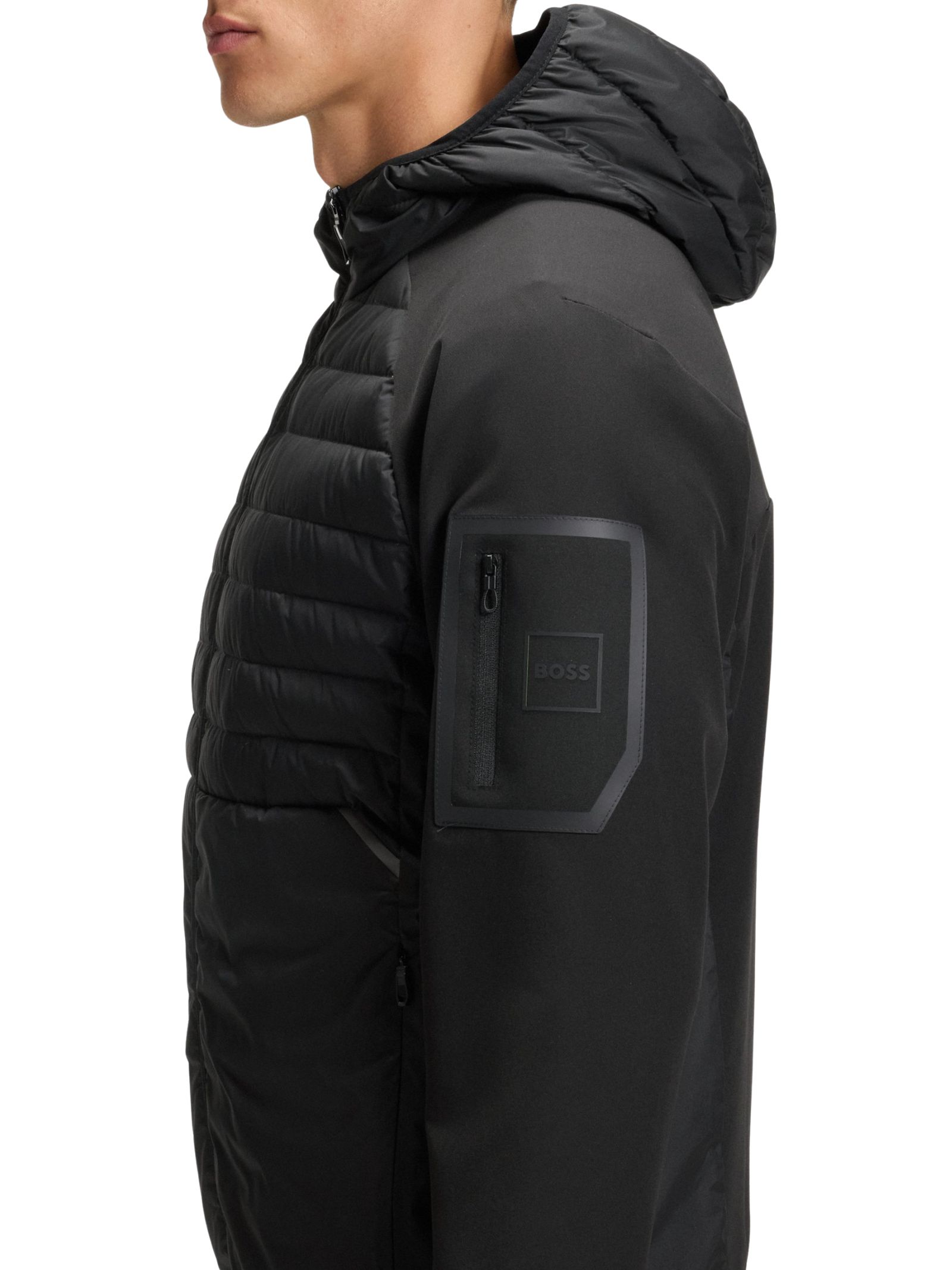 Giacca Boss Green in tessuto idrorepellente e tasca con zip sulla manica. Caratterizzato da morbidi pannelli elasticizzati e una calda imbottitura sulla parte anteriore. Materiale: 95% Poliestere (Riciclato), 5% Elastan, Imbottitura : 100% Poliestere, Parte davanti: 100% Poliestere, Imbottitura: 100% Poliestere