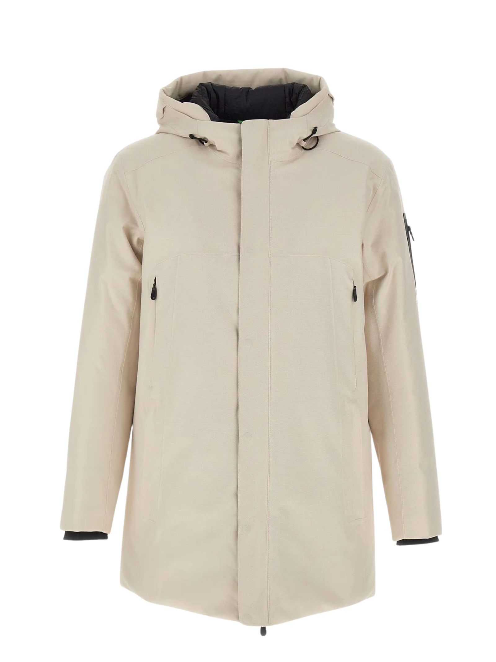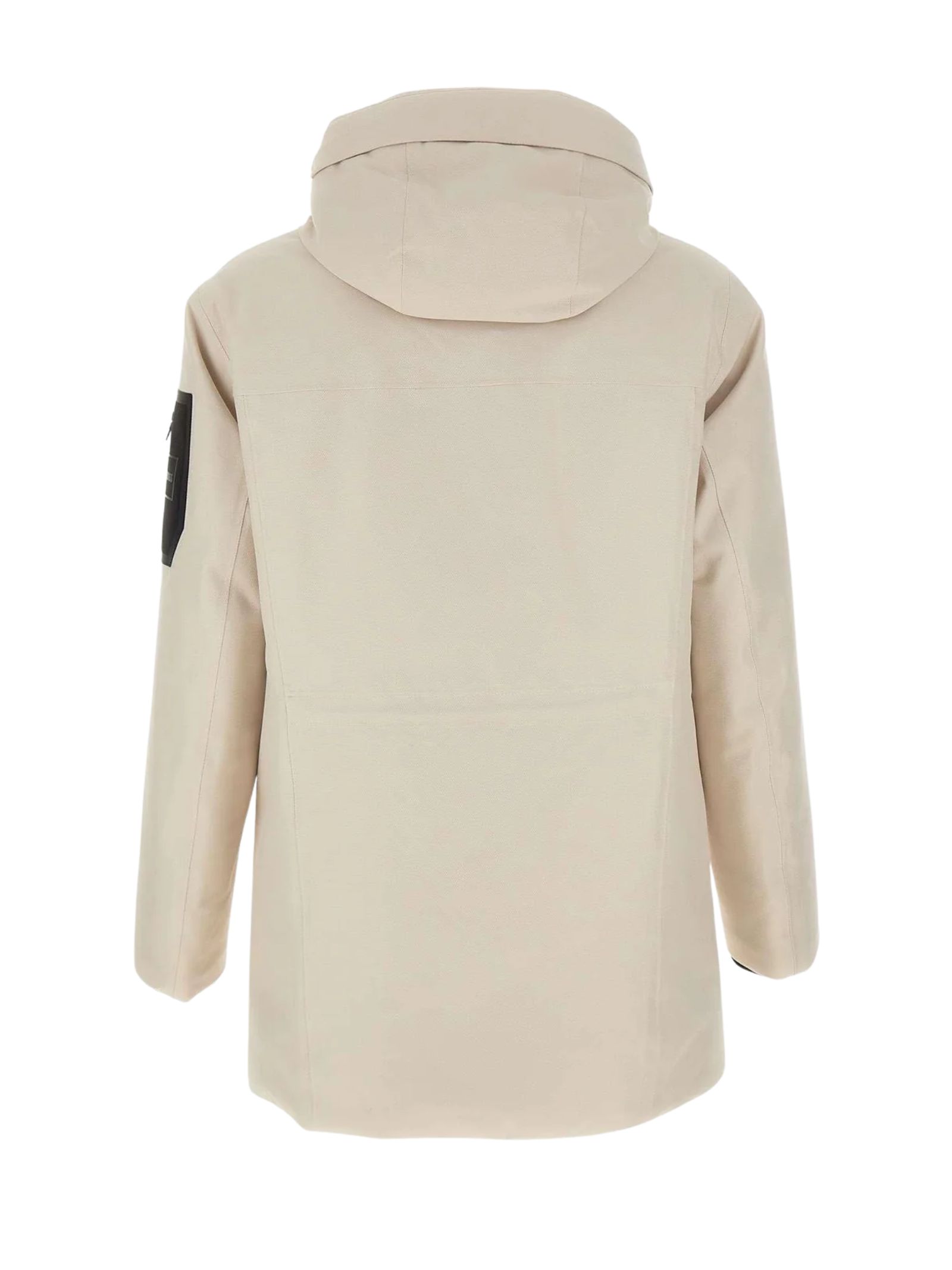 Parka da uomo BOSS modello "Hexatech", proposto nell'elegante tonalità panna e realizzato in tessuto tecnico a due strati Hexatech, pensato per offrire protezione e comfort in ogni condizione. Antivento, traspirante e resistente allacqua, questo capo unisce funzionalità e stile.