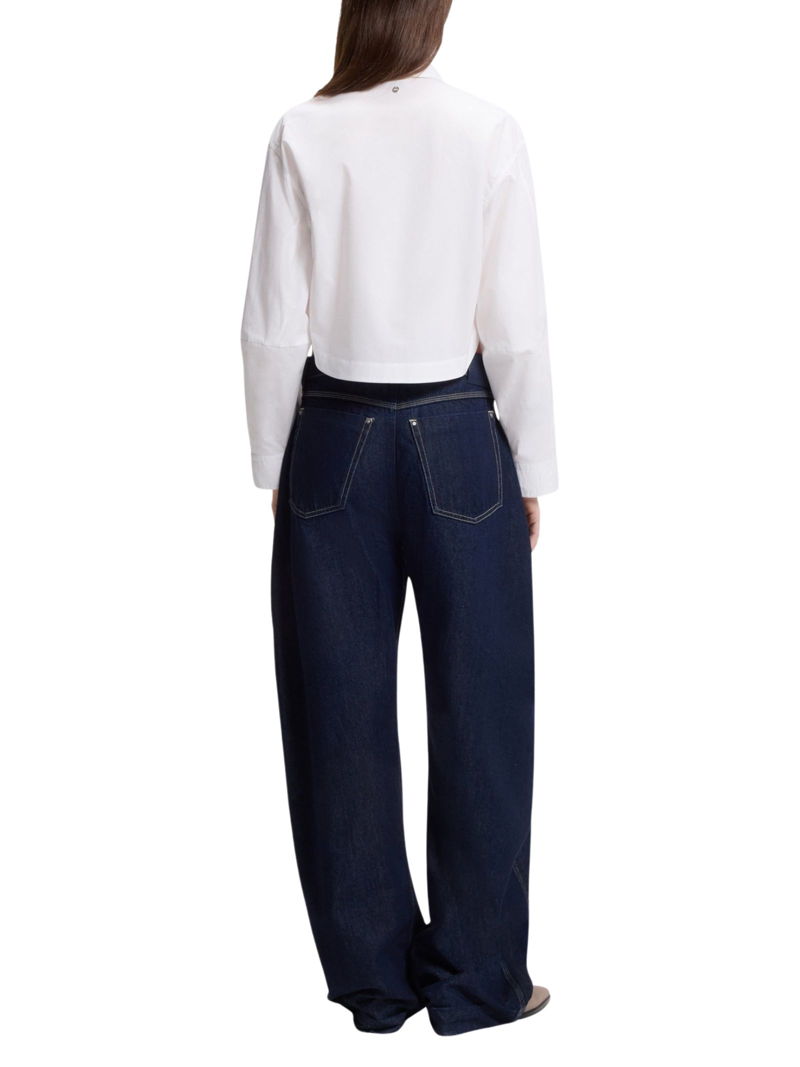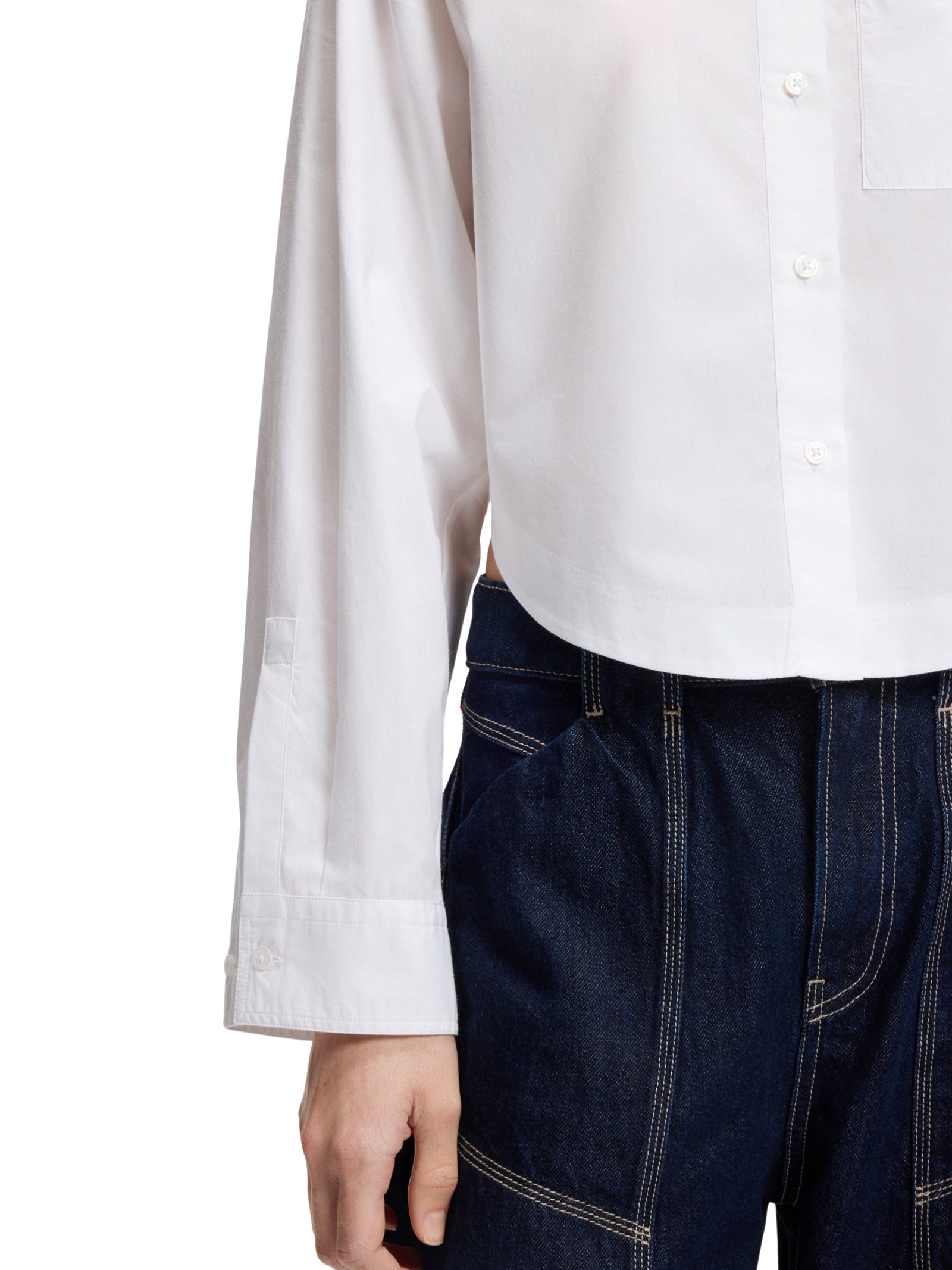 Blusa BOSS Womenswear oversize e corta in morbido popeline di cotone, facile da abbinare, con colletto a punta, maniche lunghe, polsini con bottoni, tasche applicate sul petto e logo ricamato a mano.