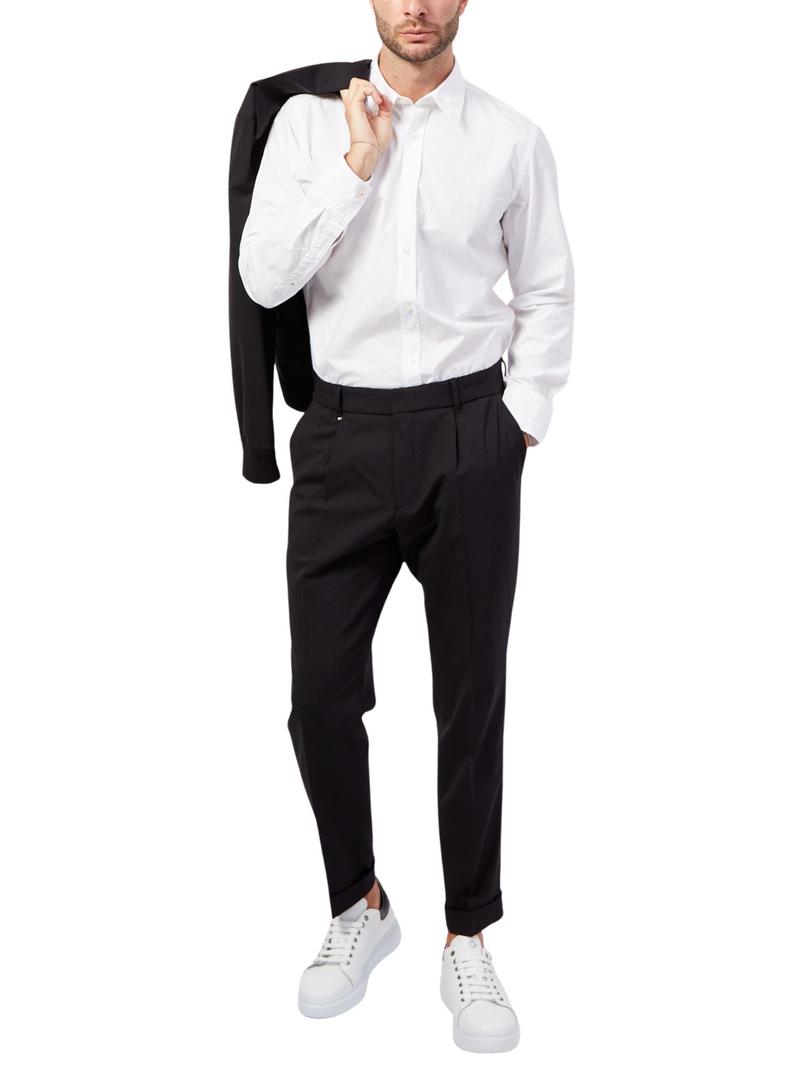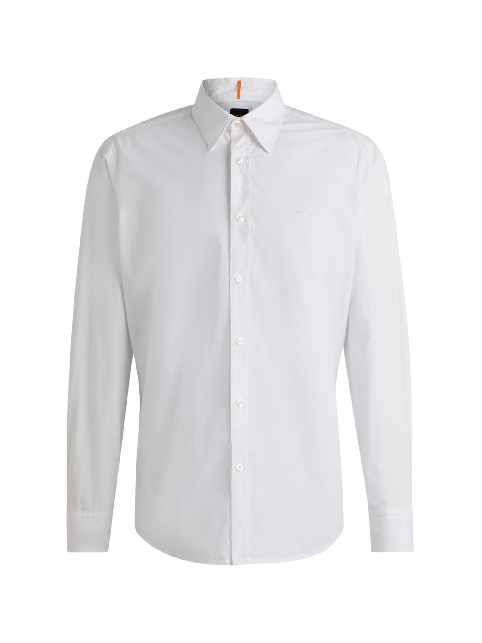 Camicia da uomo BOSS in morbido popeline bianco, caratterizzata da vestibilità regular, colletto Kent, logo ricamato. 100%cotone