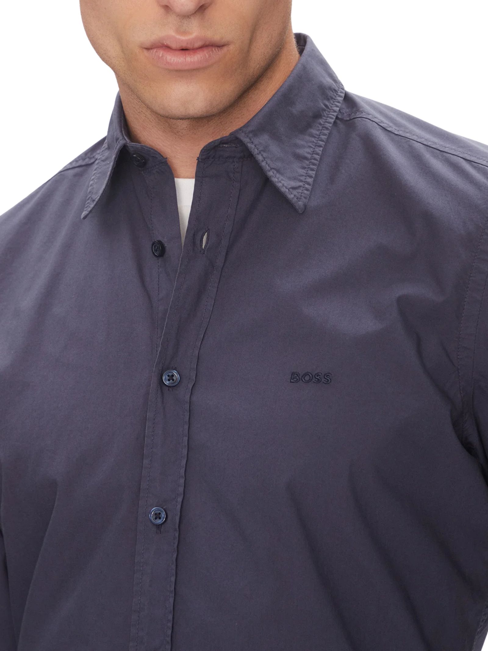 Camicia da uomo BOSS in morbido popeline bianco, caratterizzata da vestibilità regular, colletto Kent, logo ricamato. 100%cotone