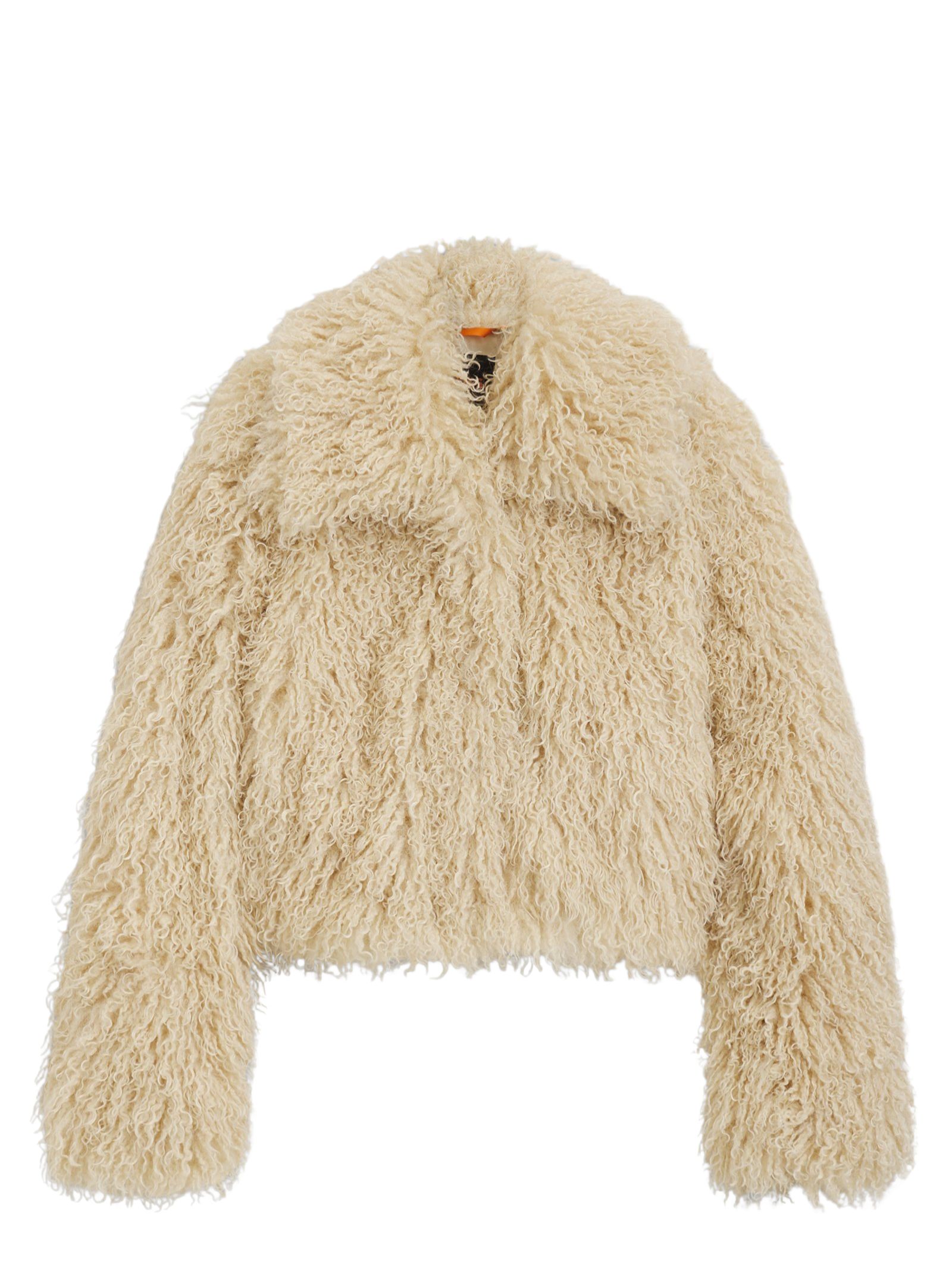 Ecopelliccia Boss realizata in morbida pelliccia sintetica effetto mongolo per un look moderno e di tendenza. Presenta chiusura centrale con gancio e occhiello e una linea elegante e avvolgente. Composizione: 100% poliestere; fodera 55% poliestere e 45% viscosa; fodera maniche 100% poliestere.