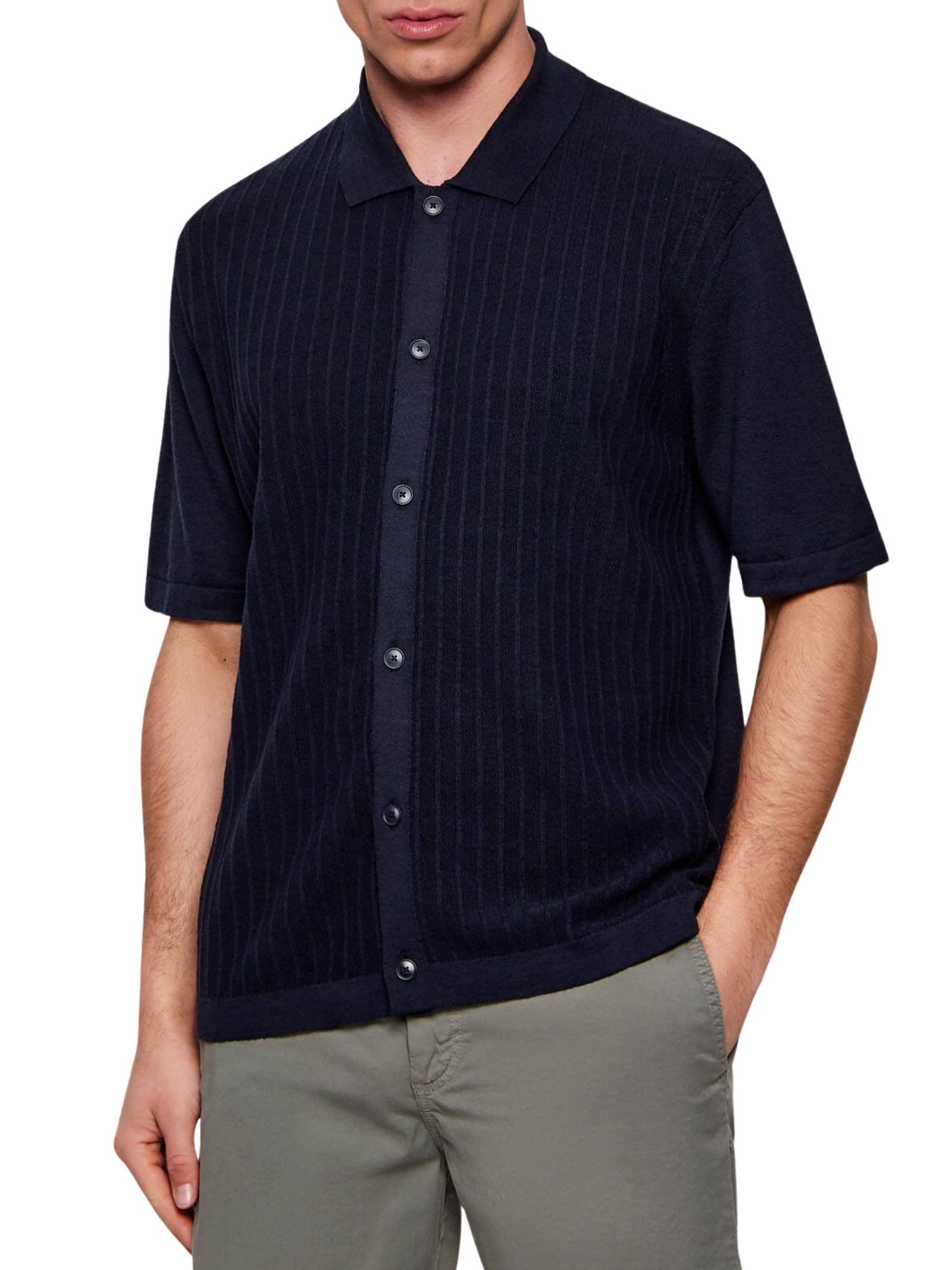 Maglia a maniche corte con bottoni realizzata in un mix leggero e traspirante di lino e cotone, combinando comfort e stile; taglio regular fit che garantisce una vestibilità classica, perfetta per look sia casual che raffinati. Composizione: 56% lino, 44% cotone.