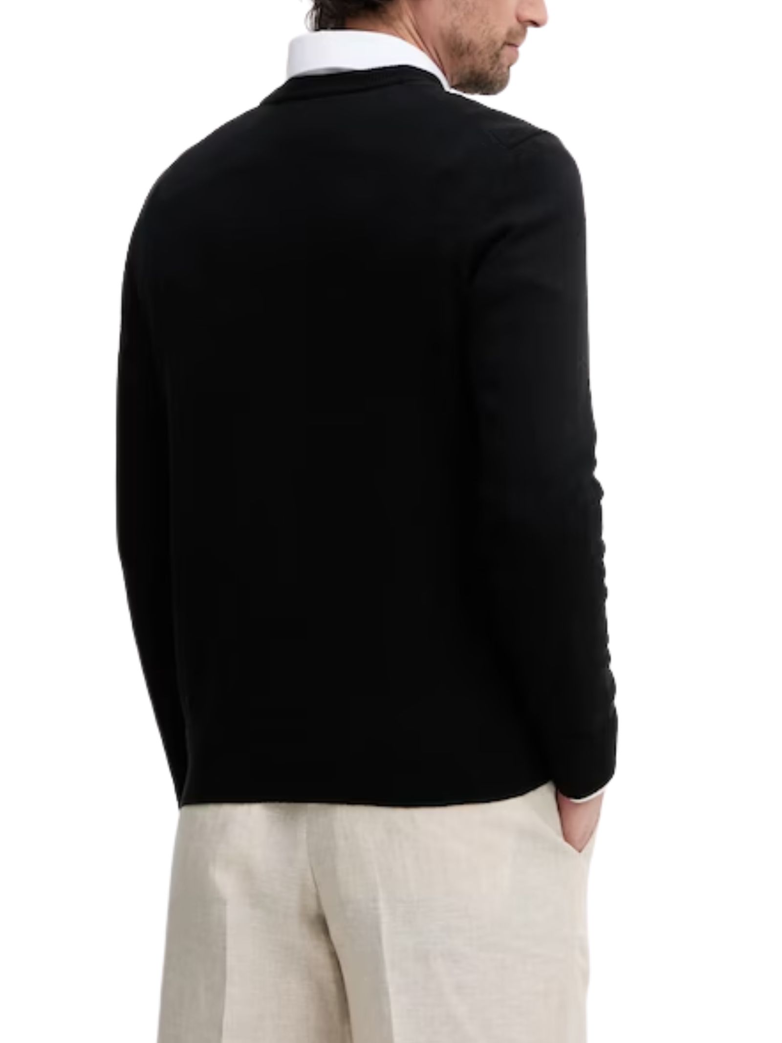 Maglione nero BOSS Menswear in morbida maglia di cotone e cashmere, per un comfort lussuoso nella vita quotidiana, con girocollo, maniche lunghe, polsini a coste e vestibilità regolare; lunghezza standard. Composizione: 95% cotone, 5% cashmere.
