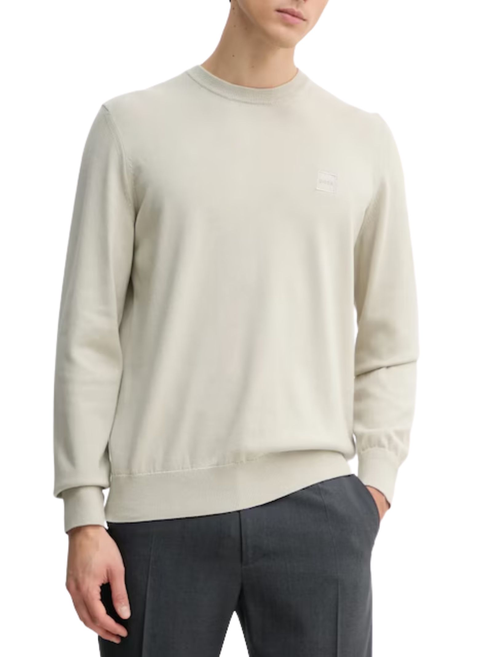 Maglione beige BOSS Menswear in morbida maglia di cotone e cashmere, per un comfort lussuoso nella vita quotidiana, con girocollo, maniche lunghe, polsini a coste e vestibilità regolare; lunghezza standard. Composizione: 95% cotone, 5% cashmere.