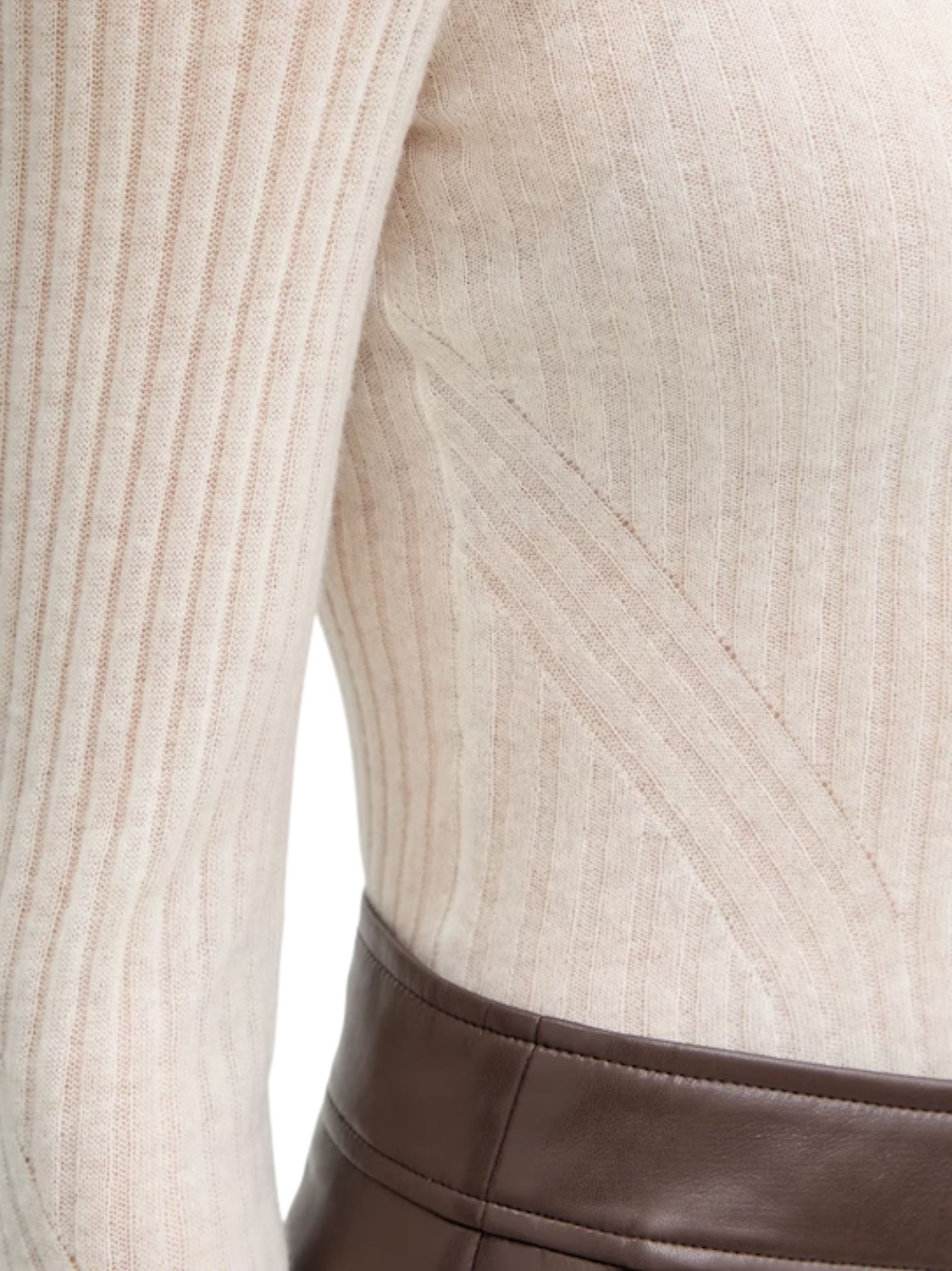 Maglione bianco BOSS dal taglio aderente che assicura libertà di movimento, colletto alto, maniche lunghe e aderenti e tessuto elasticizzato a maglia fine. Realizzato in 56% lana vergine e 44% poliammide..