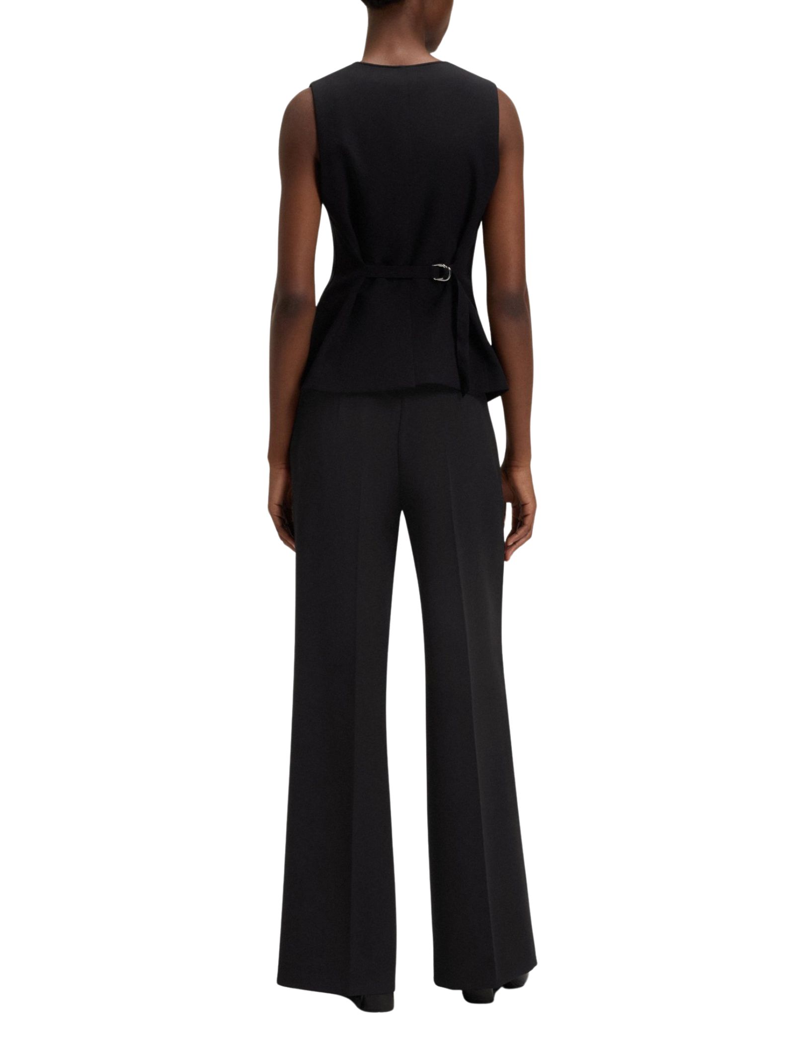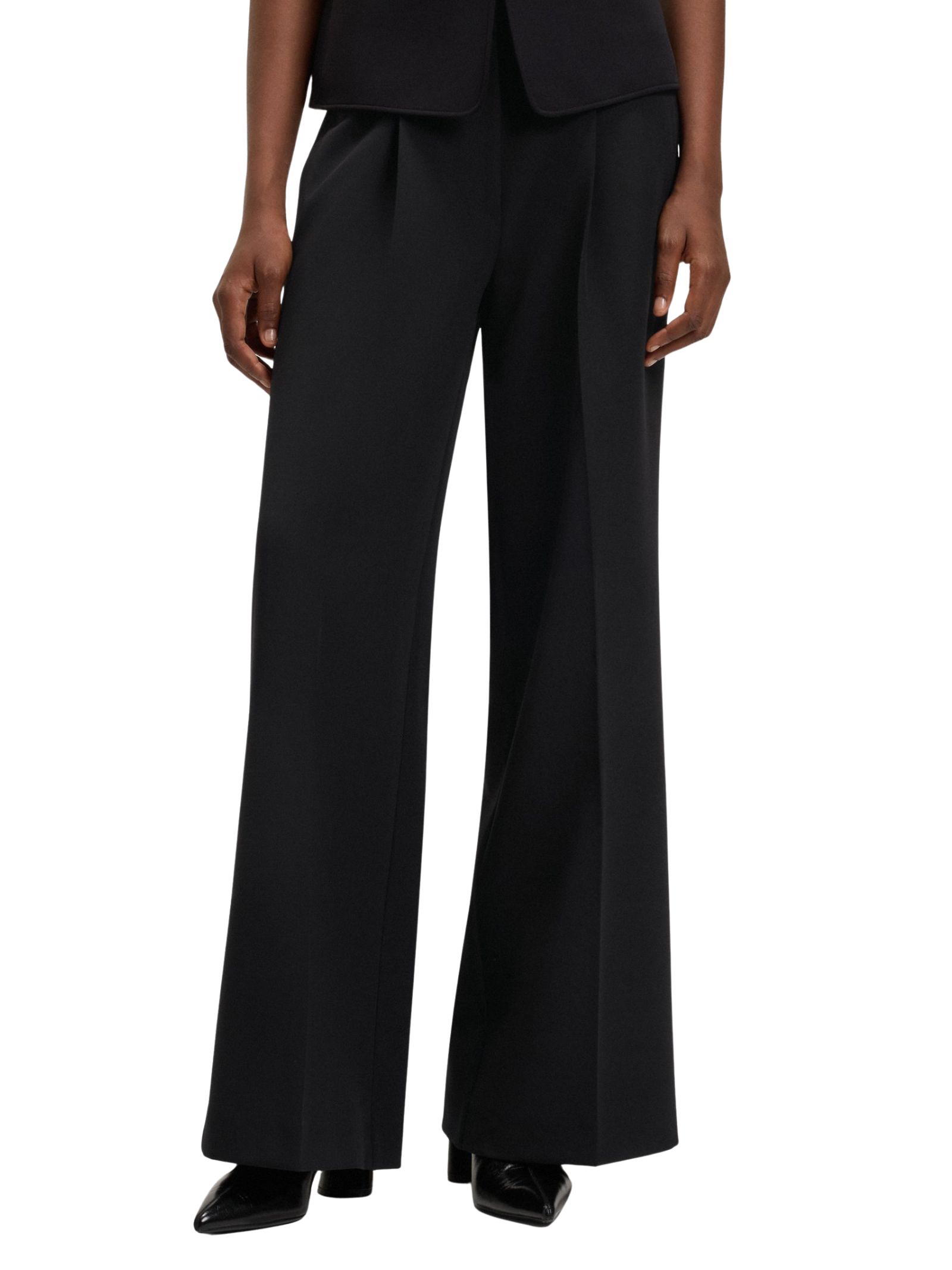 Pantaloni BOSS Donna dal taglio formale essenziale, caratterizzati da una moderna gamba larga valorizzata da piega frontale. Realizzati in tessuto elasticizzato per un comfort ottimale e abbinabili alla giacca coordinata. Presentano vita regolare, chiusura con gancetto, zip e controbottone, taglio ampio e tasche alla francese. Materiale: 87% poliestere, 13% elastan.