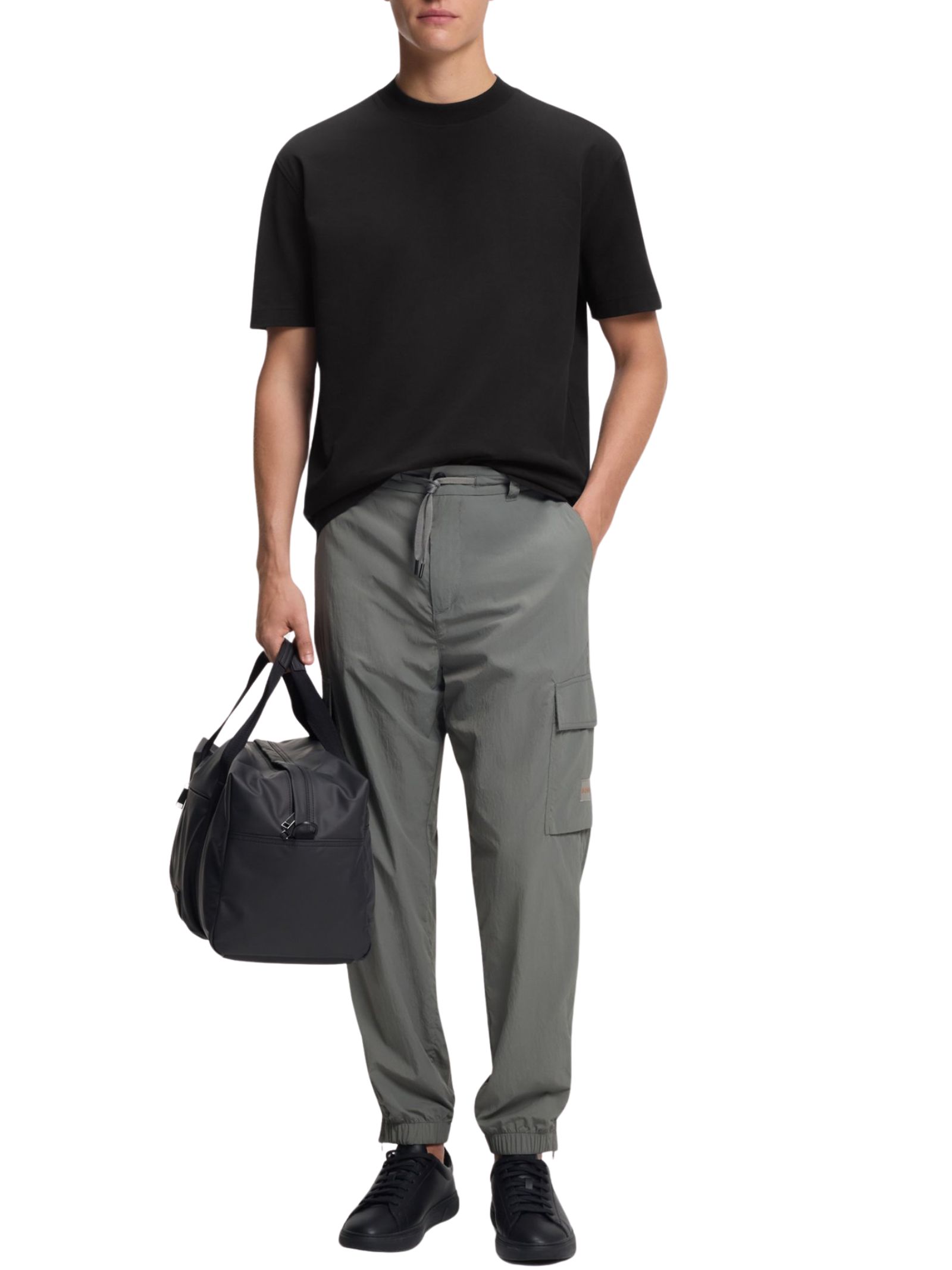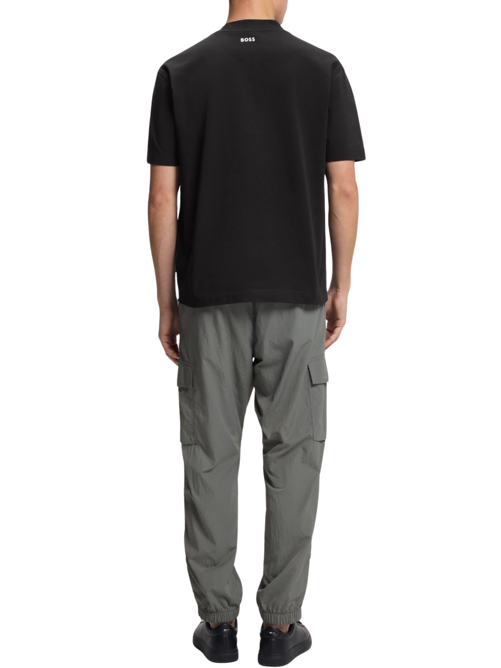T-shirt dal taglio relaxed fit, in cotone strutturato per un look casual e confortevole; maniche corte, girocollo con colletto leggermente alto e logo stampato sul retro. Composizione: 100% cotone, colletto con 3% elastan.