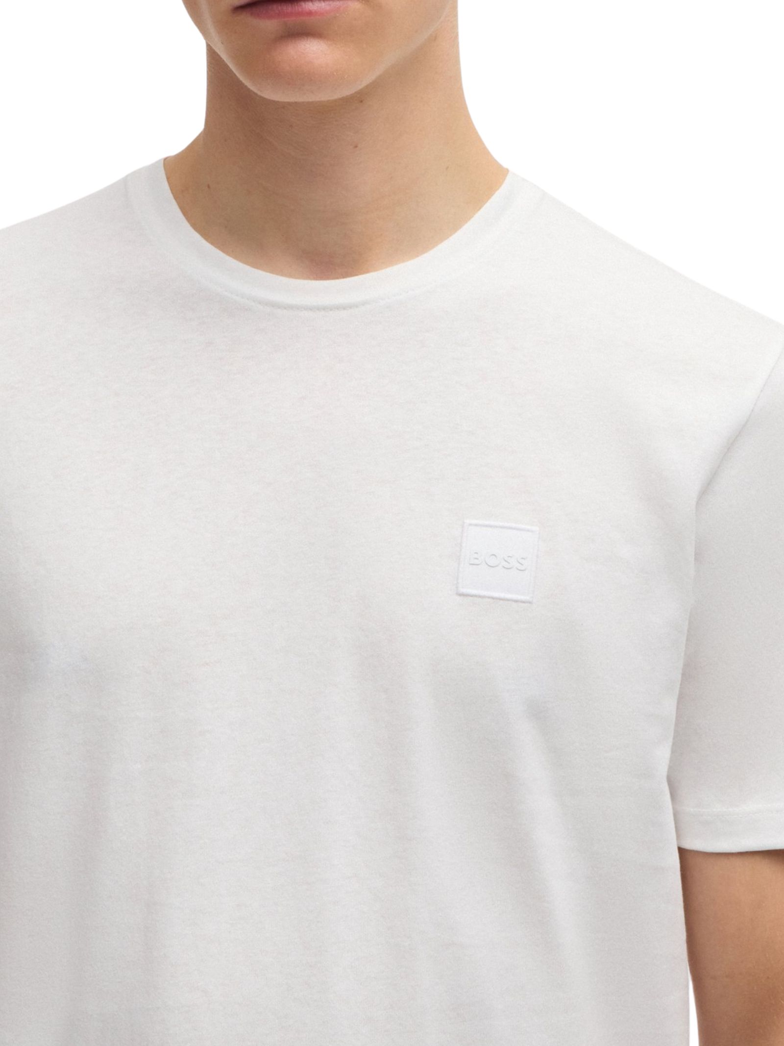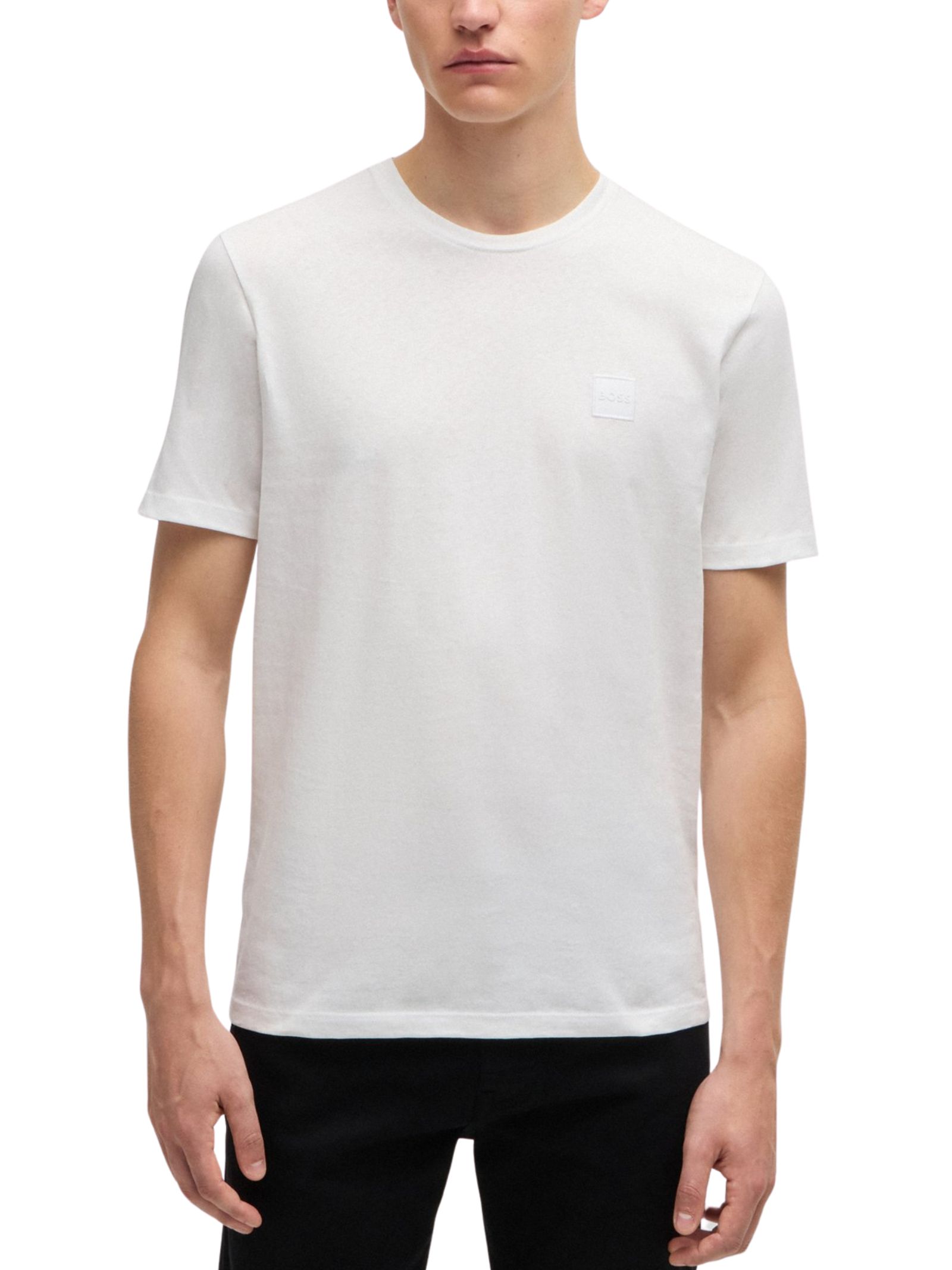 T-shirt bianca BOSS Menswear in morbido jersey di cotone con vestibilità regolare, girocollo, maniche corte e toppa logo tono su tono per un tocco di stile ai look casual. 100% cotone