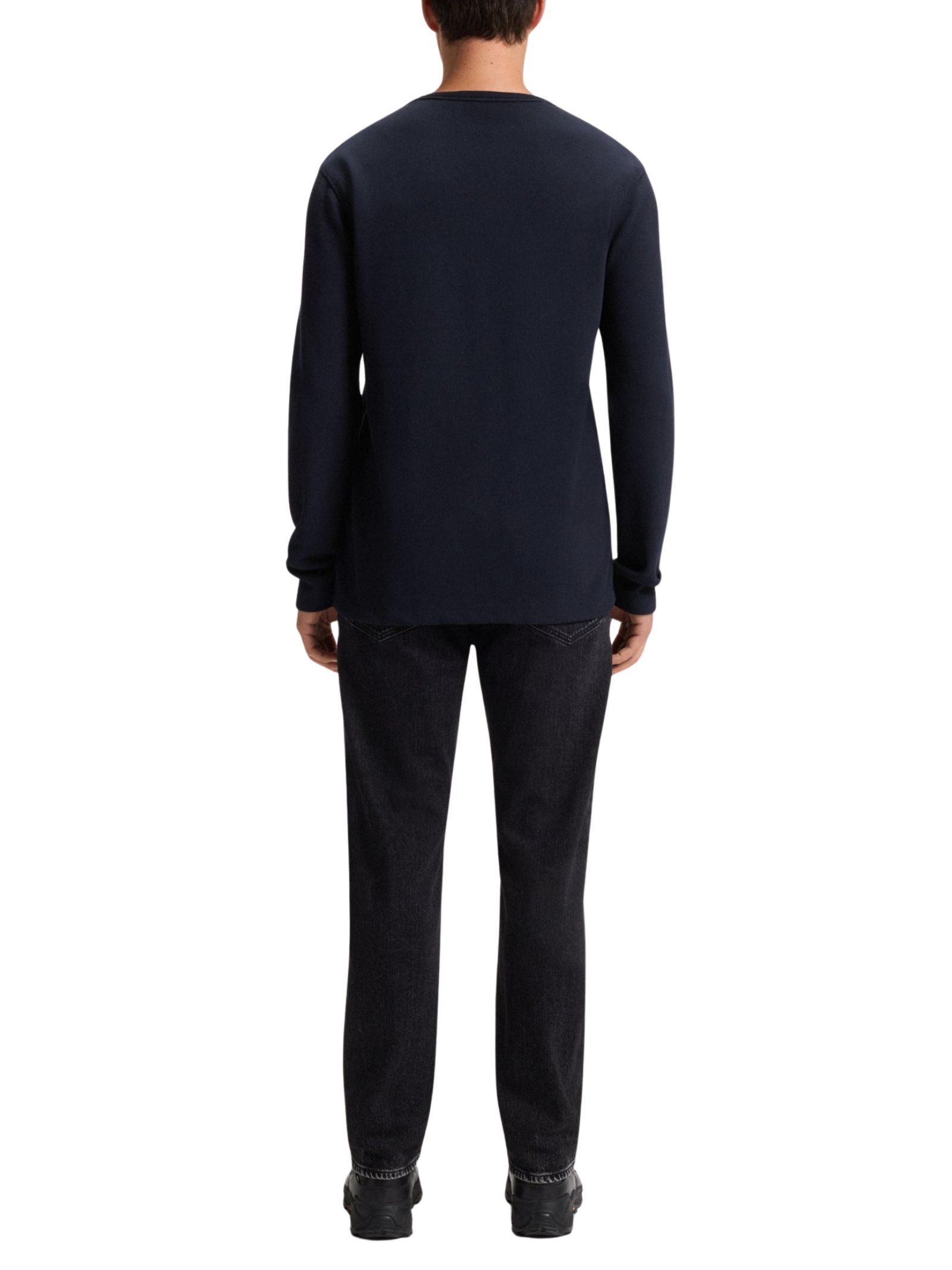 T-shirt BOSS Uomo regular fit in tessuto elasticizzato a nido dape con alta percentuale di cotone, girocollo, maniche lunghe e elegante logo ricamato. Materiale: 82% cotone, 12% poliammide, 6% elastan.