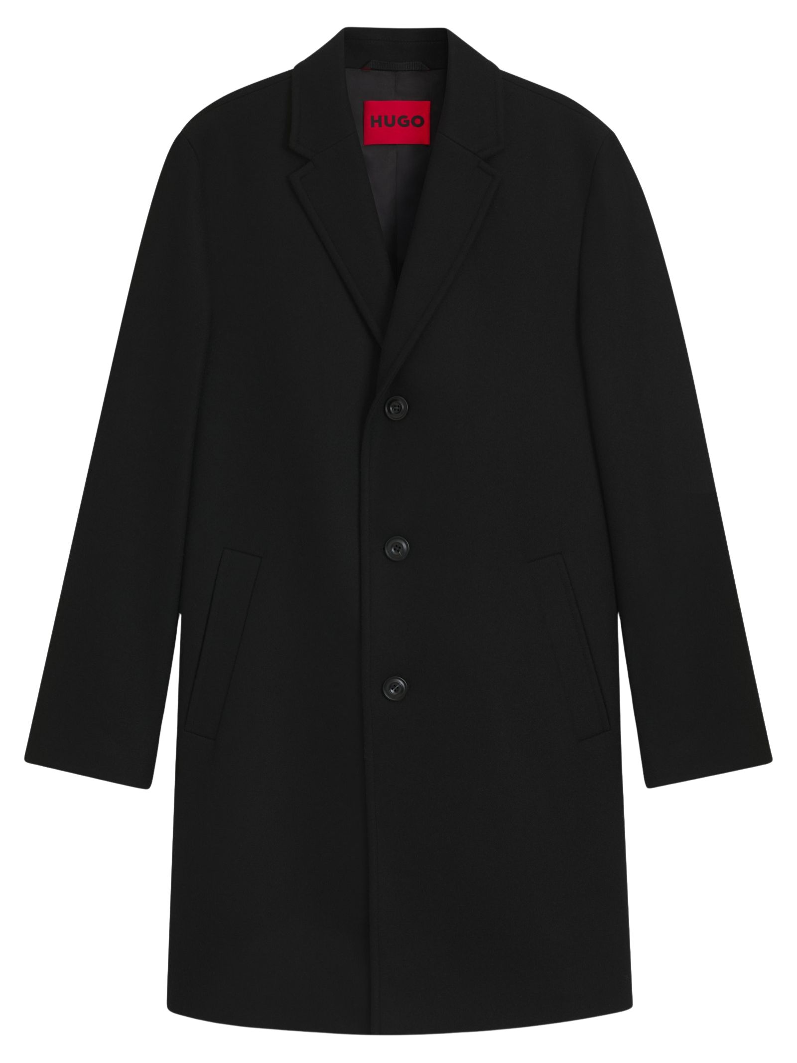 Cappotto HUGO dal taglio dritto. Realizzato in un pregiato misto lana che assicura calore e comfort durante la stagione invernale, presenta una vestibilità regolare, revers rovesciati e chiusura a tre bottoni. È dotato di tasche con patta sul davanti, tasche interne a filetto, polsini con bottoni e spacco posteriore. Completamente foderato per una finitura elegante e raffinata. Materiale: 80% lana vergine, 20% poliammide, fodera: 52% poliestere, 48% viscosa, fodera maniche: 52% poliestere, 48% viscosa, tasche: 100% cotone
