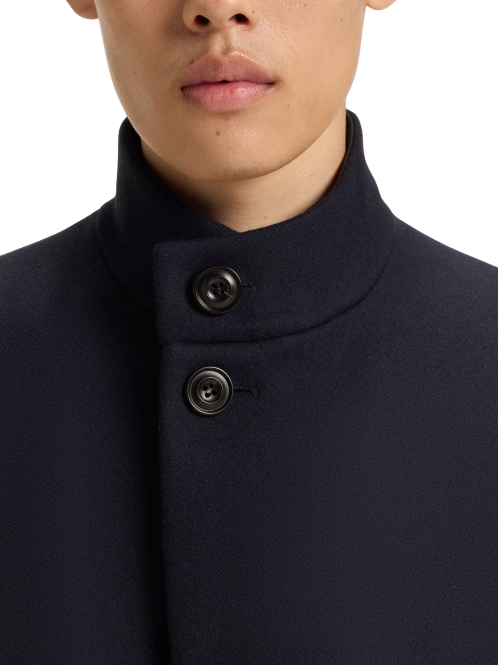 Cappotto blu HUGO Uomo dalla comoda vestibilità regular fit, ideale da indossare sopra capi sartoriali. Realizzato in un pregiato tessuto misto con alta percentuale di lana, presenta colletto alla coreana, chiusura con quattro o più bottoni, tasche frontali con patta, tasche interne con pistagna e spacco posteriore. Completamente foderato. Materiali: 80% lana vergine, 20% poliammide. Fodera corpo e maniche: 52% poliestere, 48% viscosa. Fodera tasche: 100% cotone.