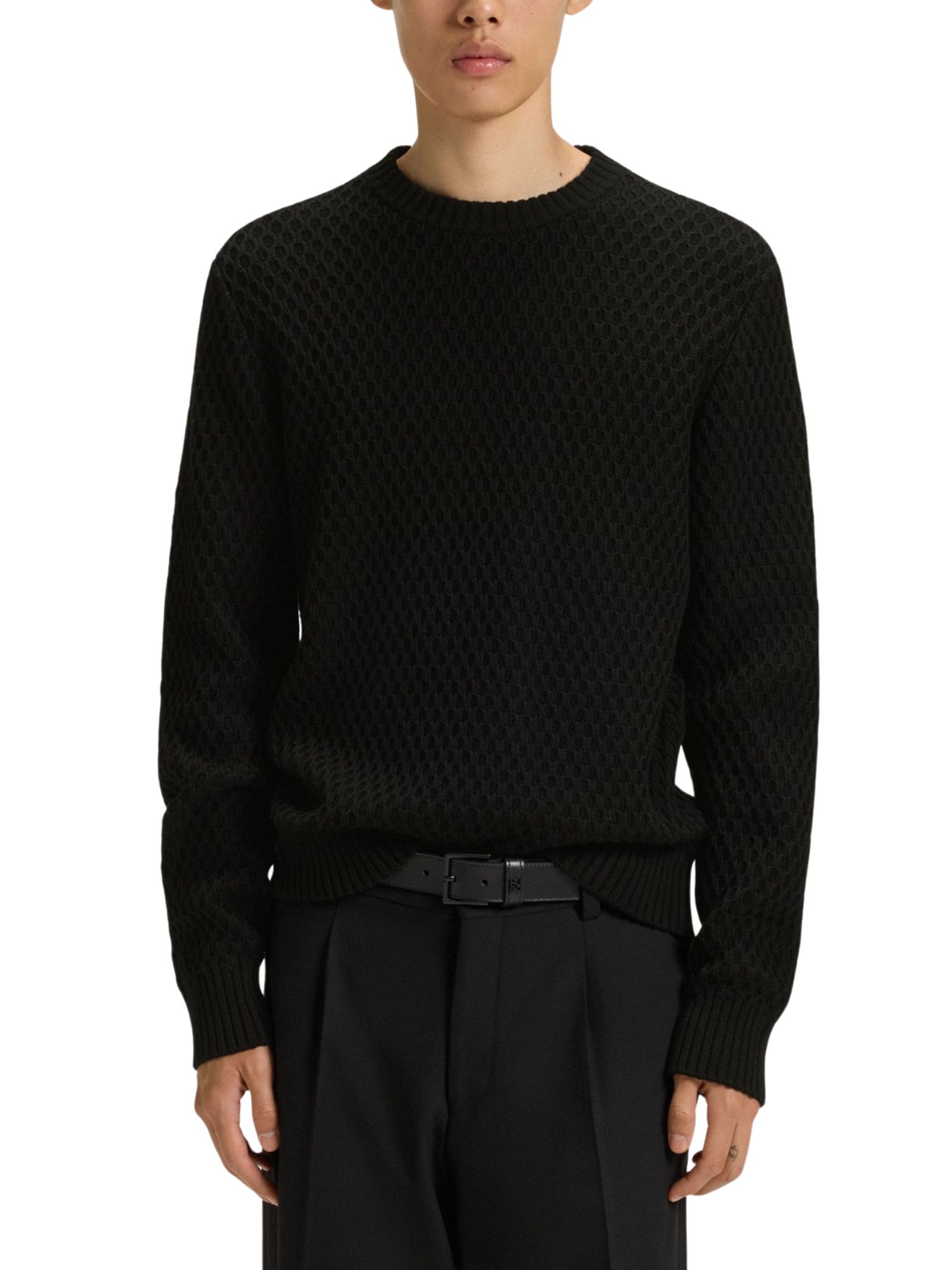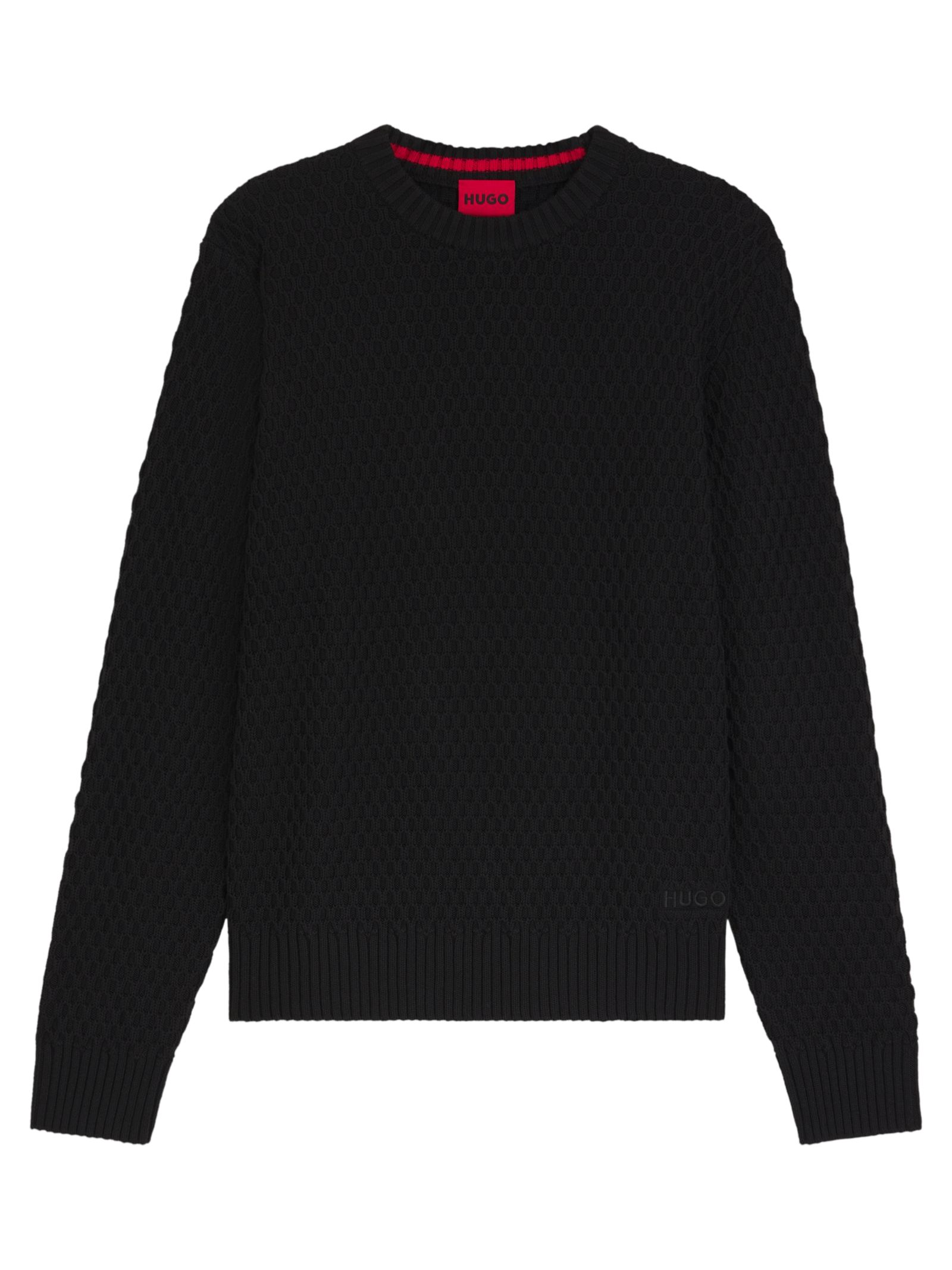 Maglione nero HUGO Uomo in cotone con moderna lavorazione 3D che aggiunge texture al look. Presenta girocollo, maniche lunghe, lunghezza standard e vestibilità regular fit; Materiale: 100% Cotone