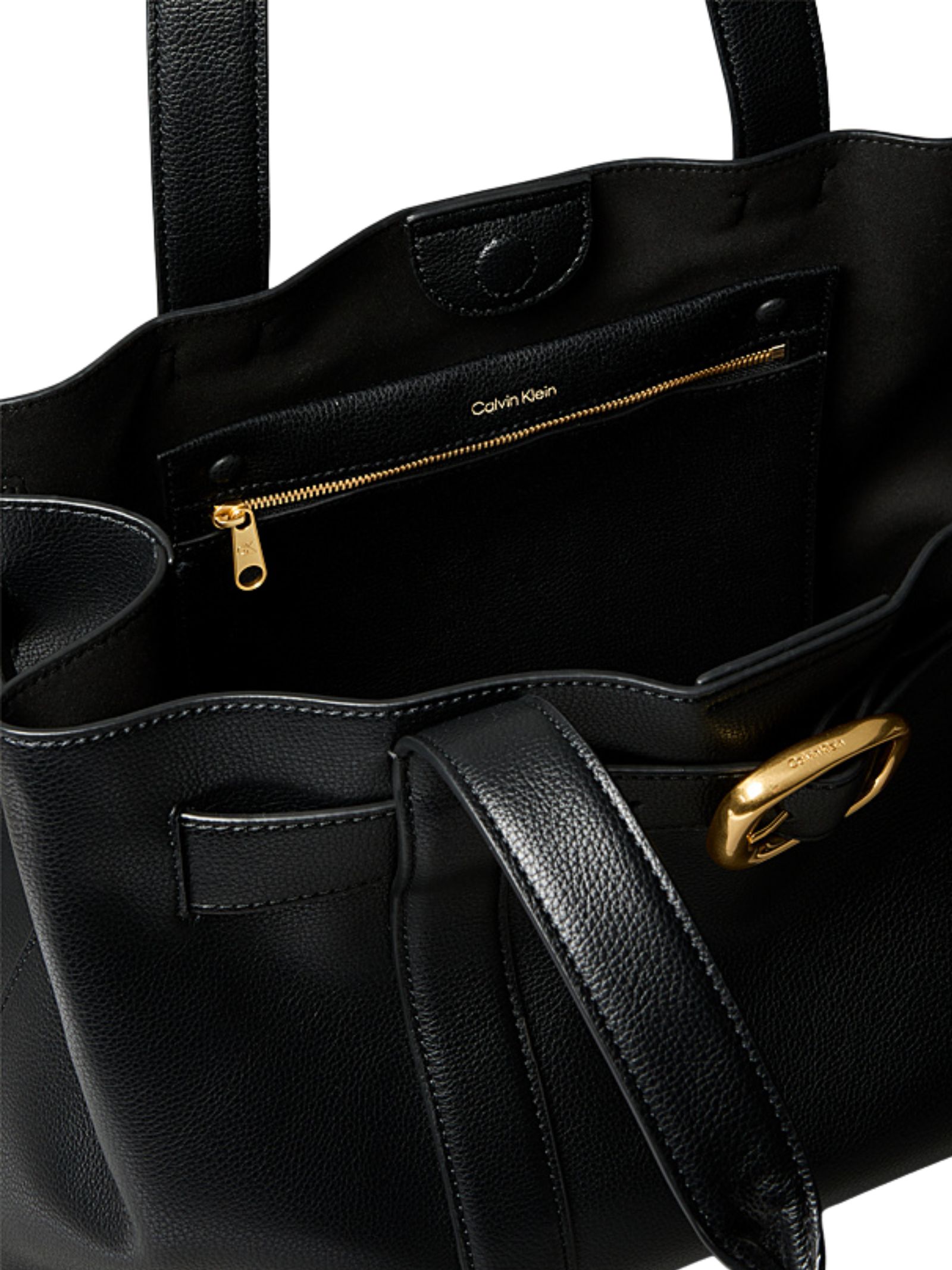Borsa in ecopelle Calvin Klein. Linee definite e dettagli curati caratterizzano questo accessorio versatile, perfetto per uno stile di vita moderno. Presenta manici superiori e cintura decorativa sulla parte anteriore. Composizione: 100% poliuretano.