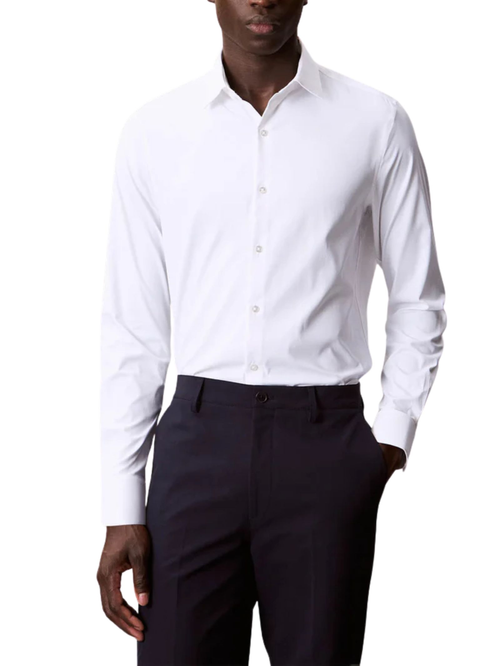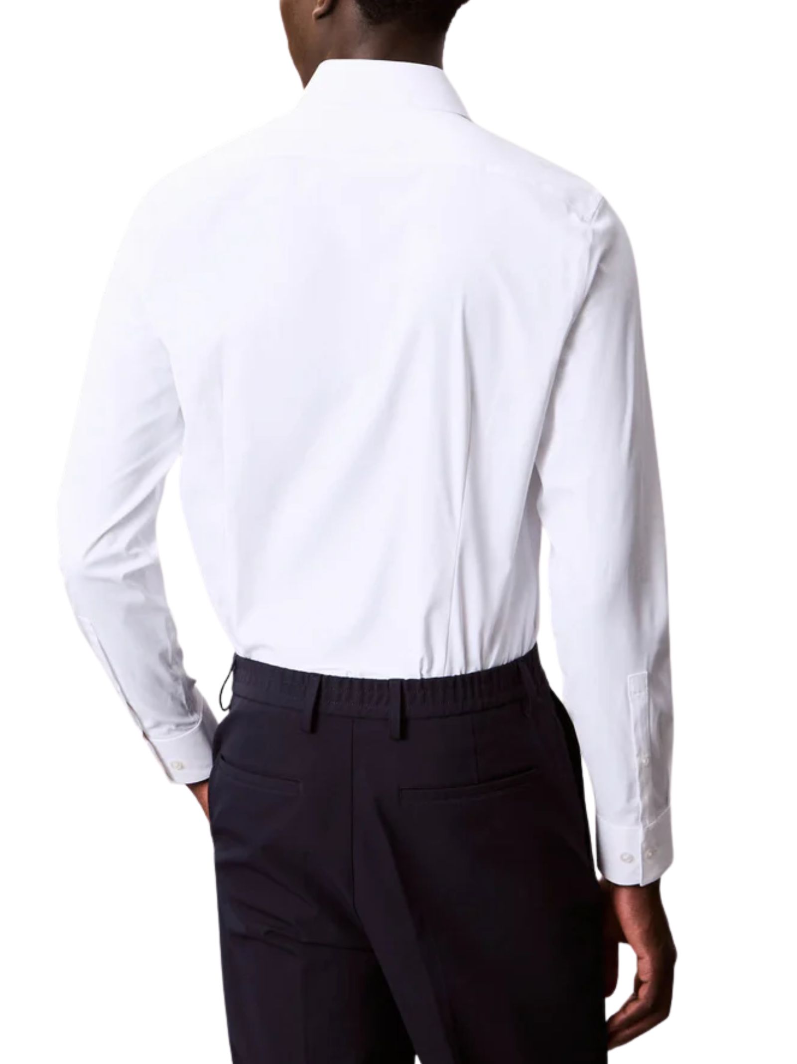 Camicia bianca slim fit, con mini logo Calvin Klein sul petto, chiusura a bottoni e maniche lunghe con polsini e bottoni. 93% poliammide, 7% elastan.