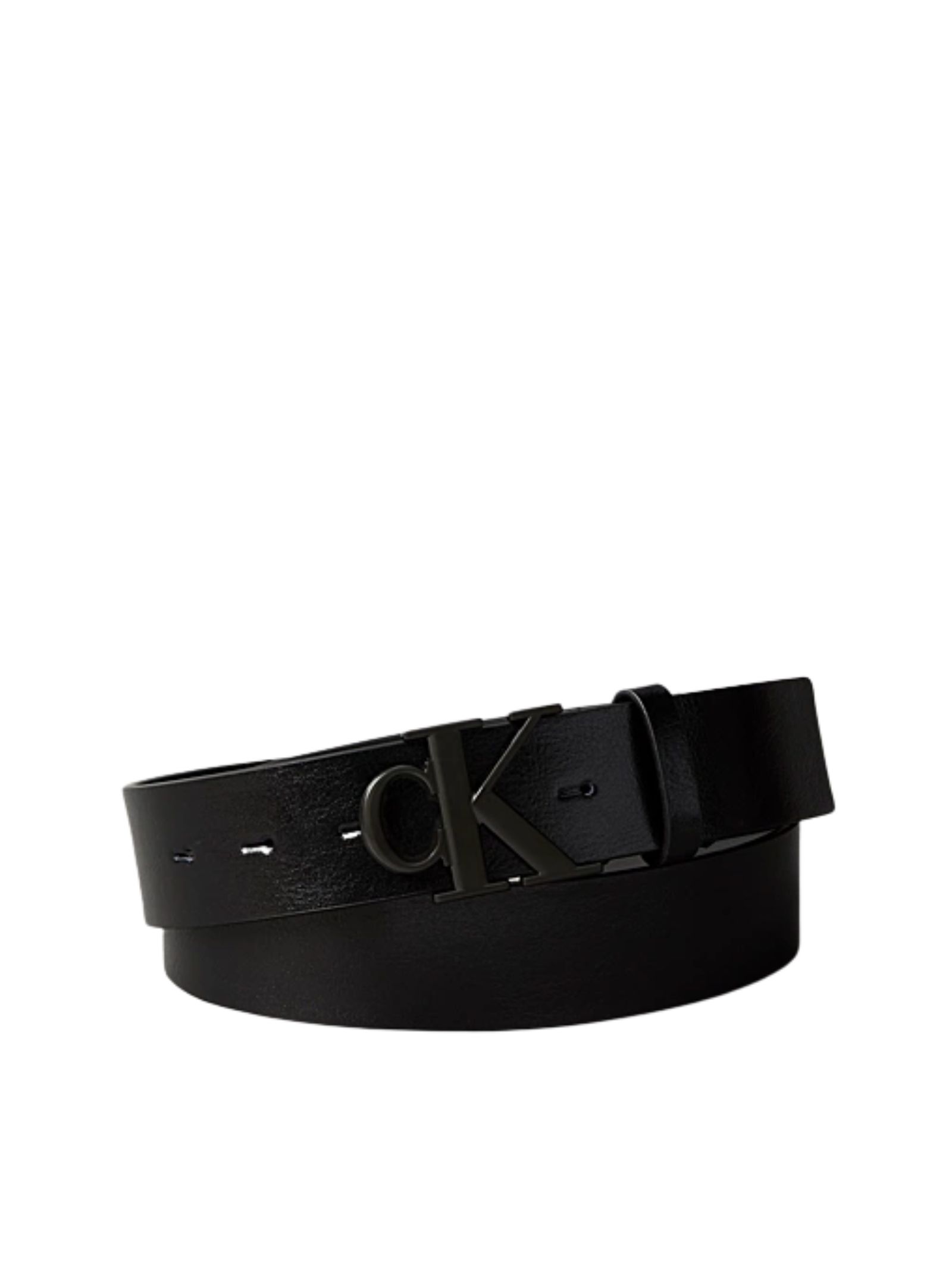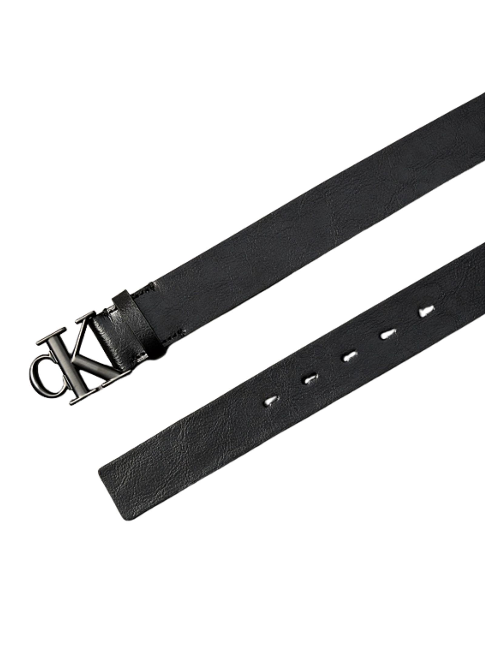 Cintura in pelle pieno fiore bottalata, con fibbia con monogramma Calvin Klein e rivetti in metallo spazzolato, prodotta in Europa. Larghezza: 3,5 cm; lunghezza: 85-115 cm. Composizione: 100% pelle.