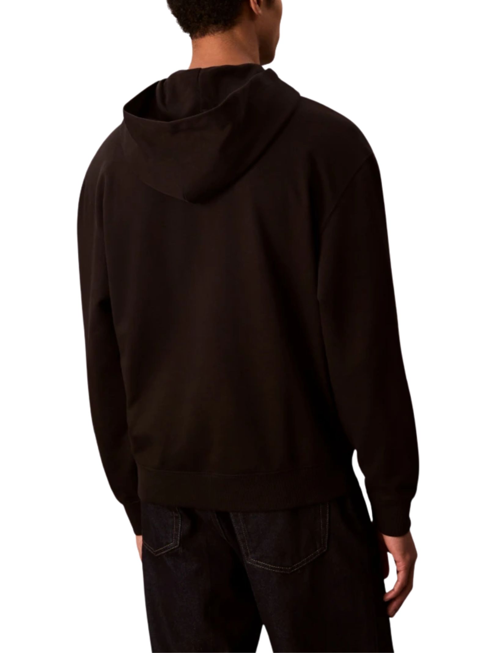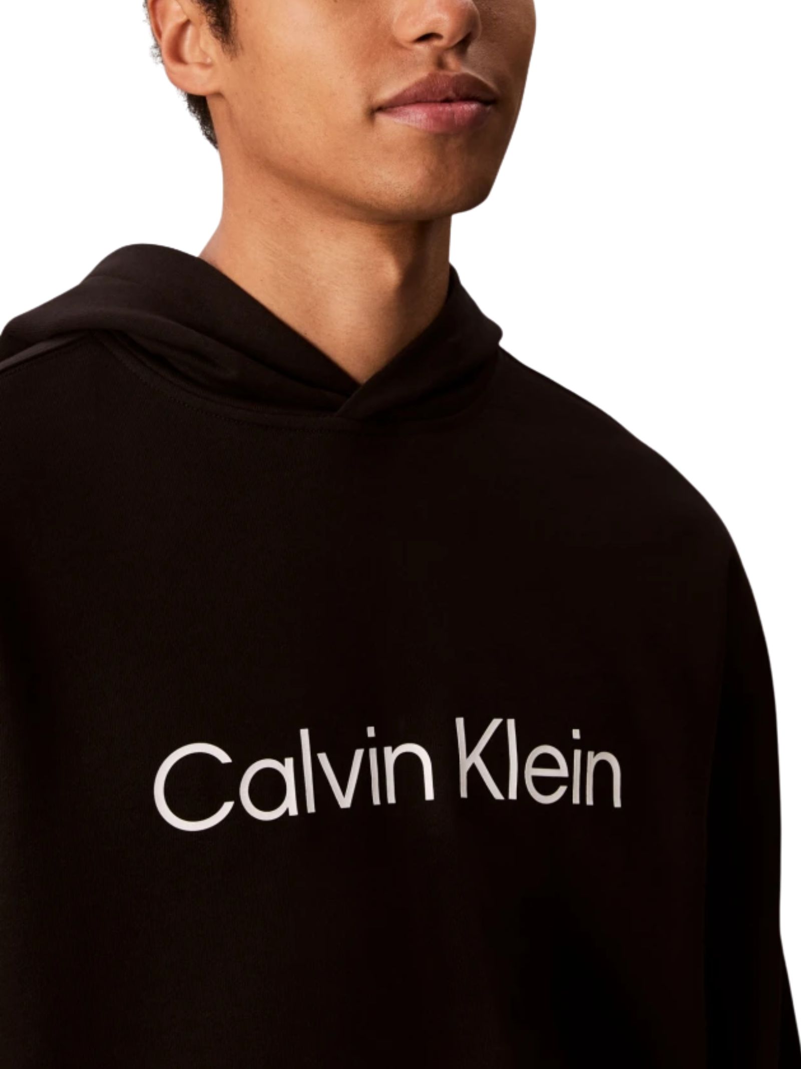 Felpa nera Calvin Klein con cappuccio da uomo dallo stile essenziale, con logo frontale discreto, ideale per look casual e rilassati e perfetta per luso quotidiano. Composizione: 100% cotone.