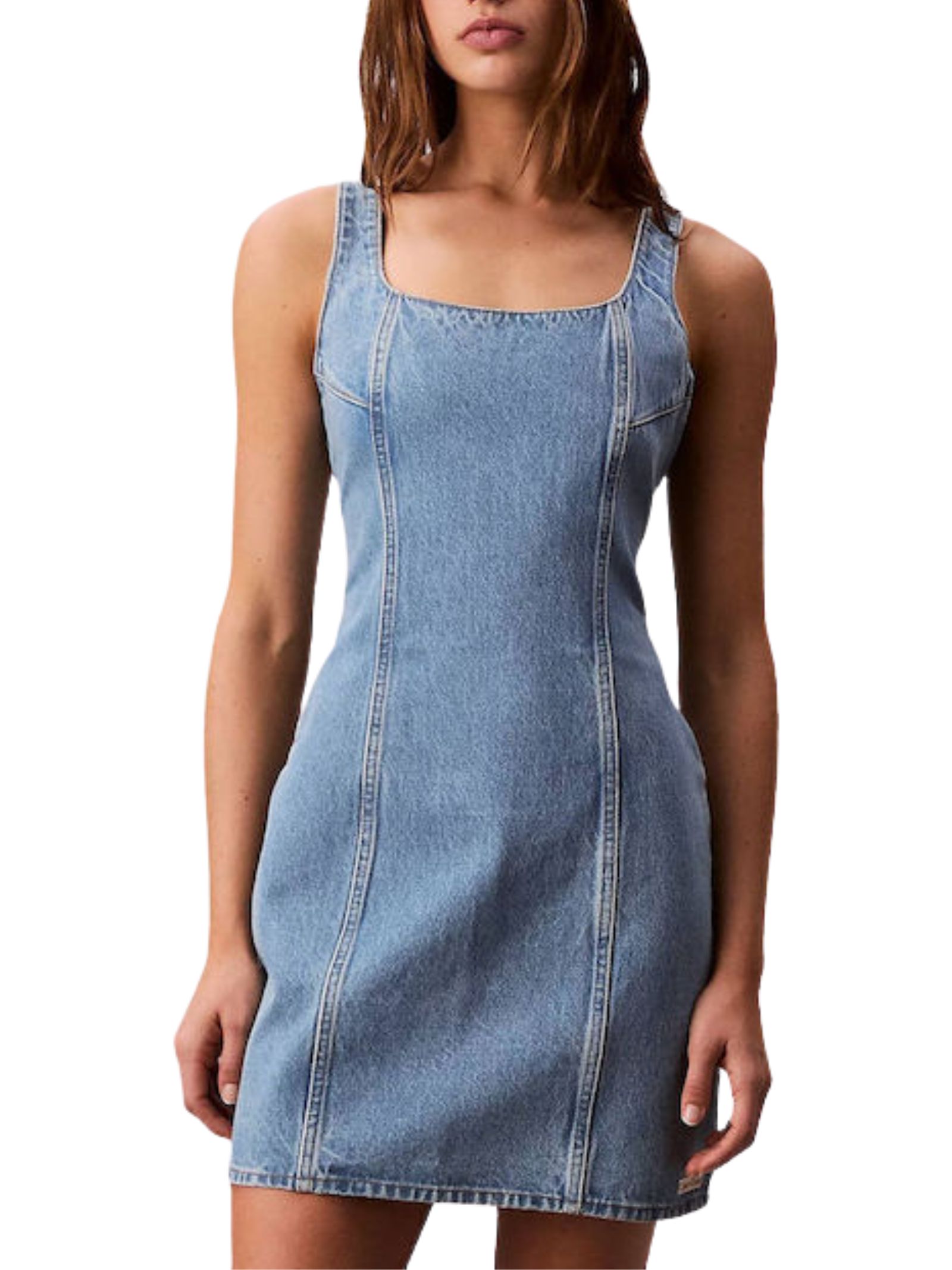 Abito corto in denim Calvin Klein Jeans con bretelline.