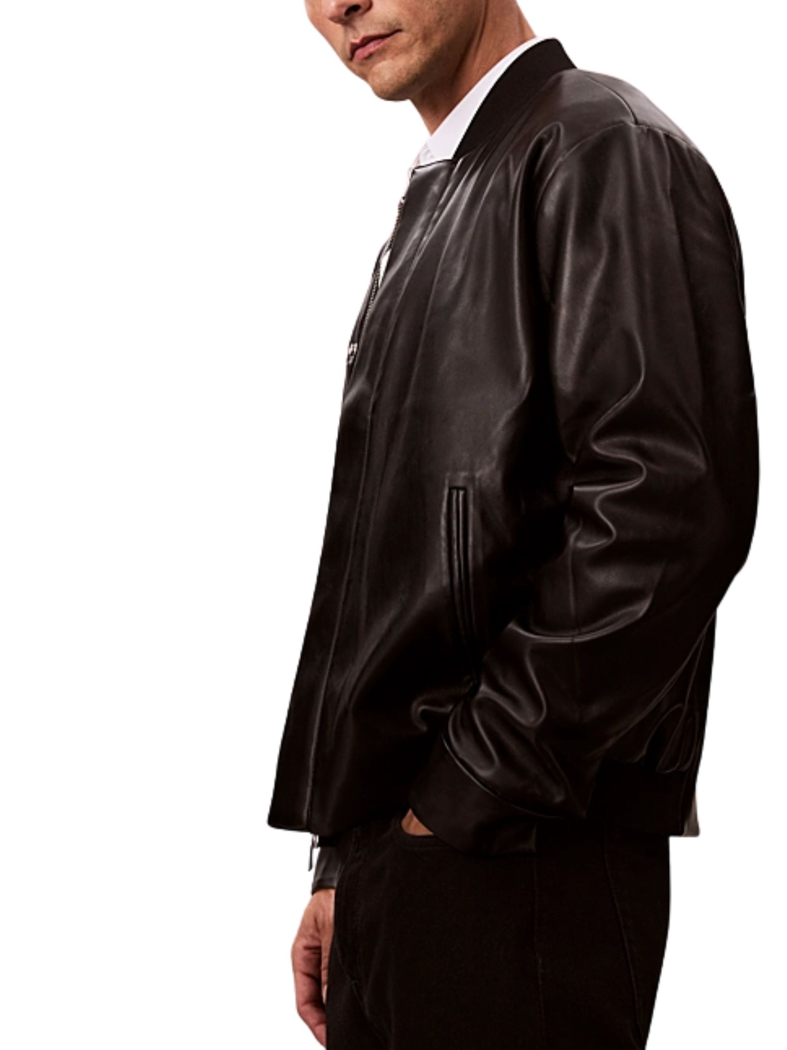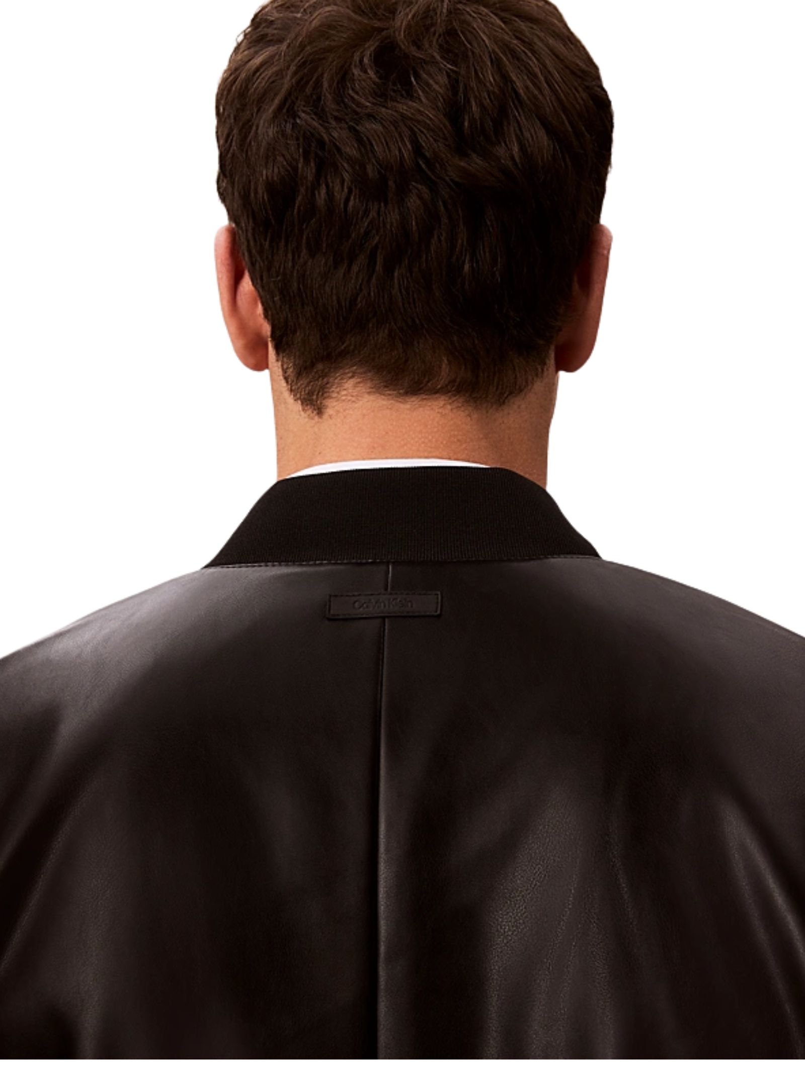 Questo giubbotto Calvin Klein Jeans in ecopelle premium rinnova il classico stile bomber con un taglio regolare, colletto e pannelli laterali in maglia a costine, chiusura con zip e automatici nascosti per una finitura pulita ed elegante, tasche a filetto in vita, fodera imbottita e trapuntata con tasca interna, ed è completato da unetichetta con logo Calvin Klein applicata dietro il collo; realizzato con esterno in 60% poliuretano e 40% poliestere, e fodera e imbottitura in 100% poliestere.