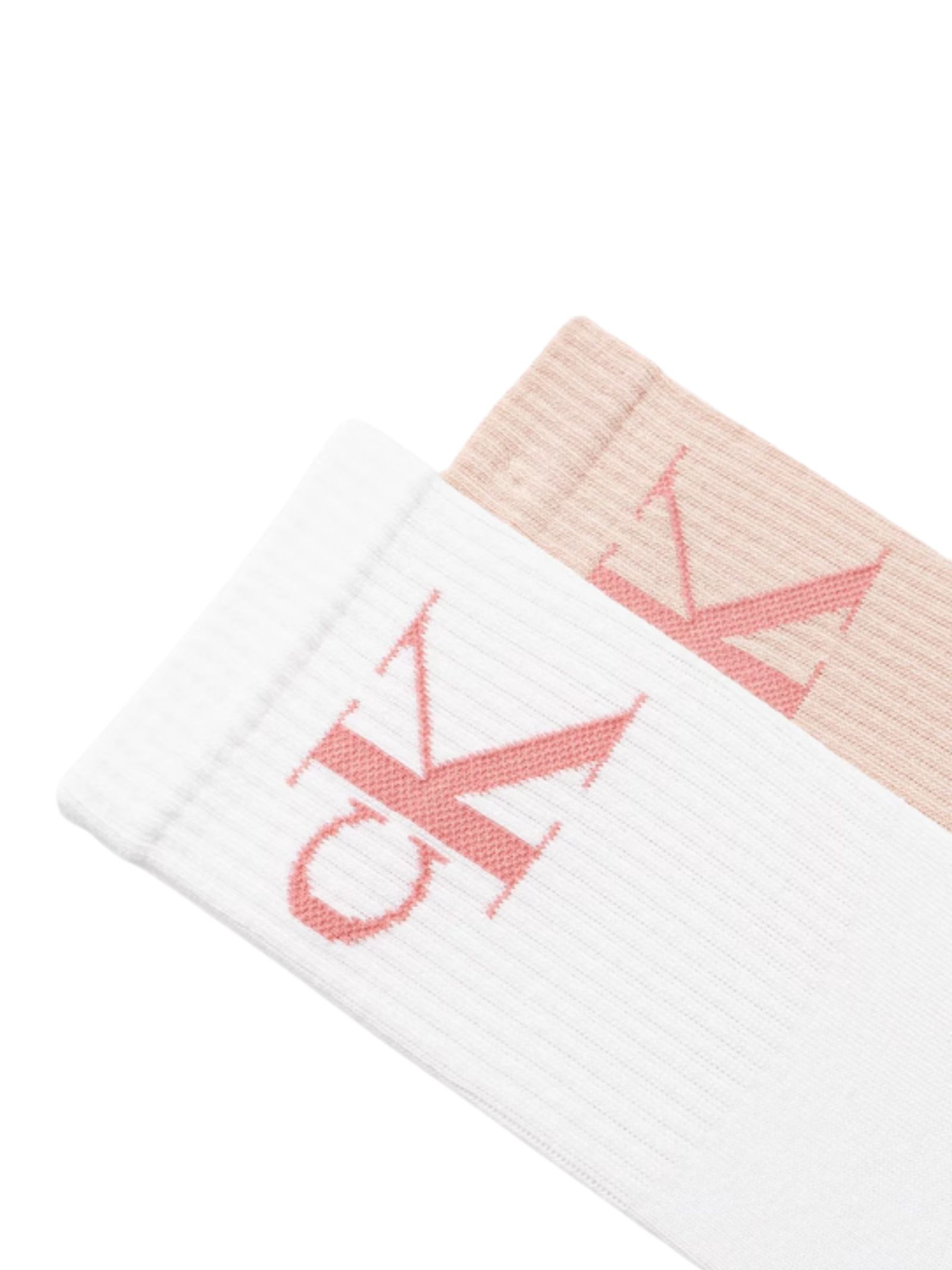 Confezione da 2 paia di calzini Calvin Klein Jeans realizzati in materiale elasticizzato per un comfort ottimale. Dotati di fascette elastiche che impediscono lo scivolamento. Composizione: 68% cotone, 28% poliestere, 3% elastan, 1% poliammide.