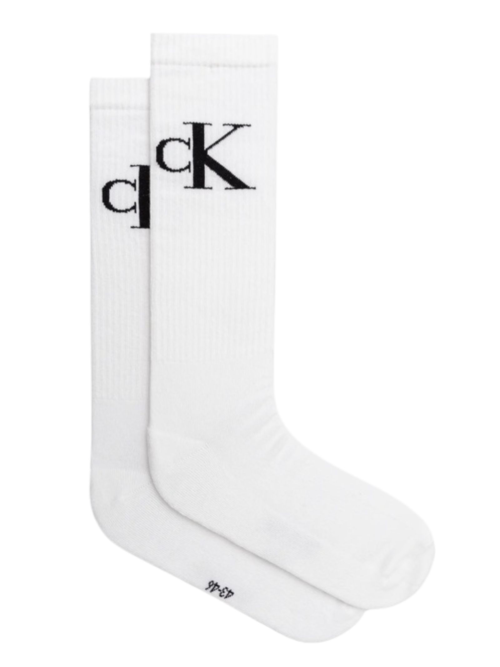 Confezione da 2 paia di calzini lunghi Calvin Klein Jeans realizzati in materiale elastico e spesso, con cotone biologico coltivato senza sostanze chimiche o pesticidi. Dotati di fascette elastiche che impediscono lo scivolamento, garantendo comfort e stabilità per tutto il giorno.