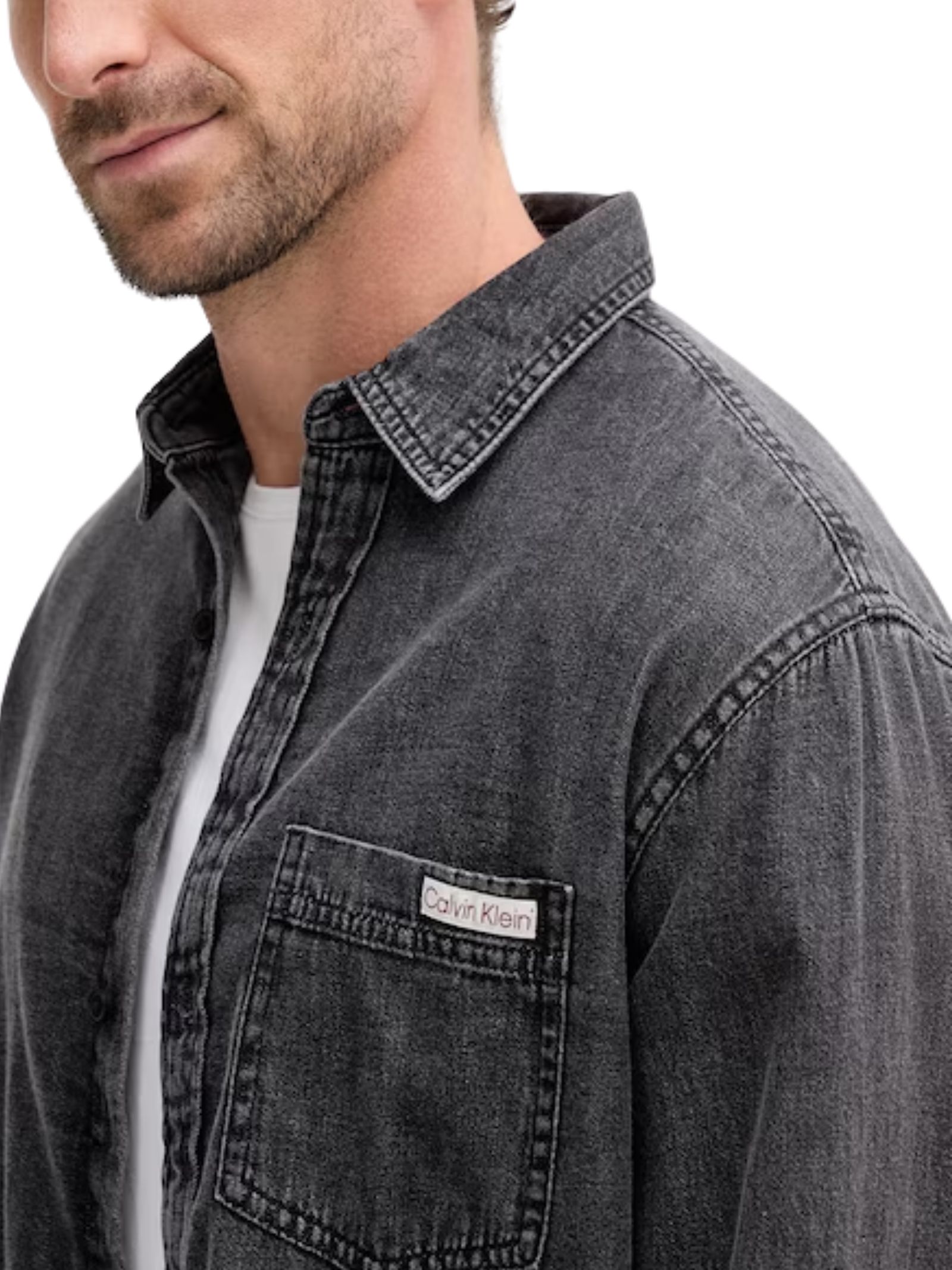 Camicia Calvin Klein Jeans realizzata in denim slavato a tinta unita. Modello dal taglio dritto che garantisce libertà di movimento, con maniche lunghe, polsini con bottoni, tasca a filetto sul petto e colletto classico. Il tessuto è in denim fine e non elasticizzato, con chiusura frontale a bottoni.