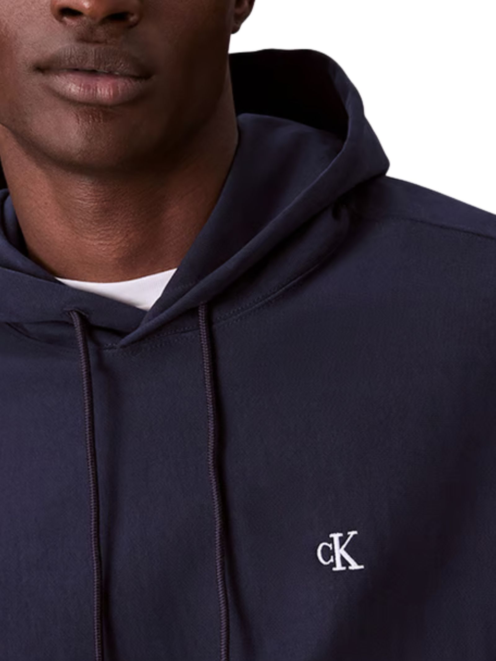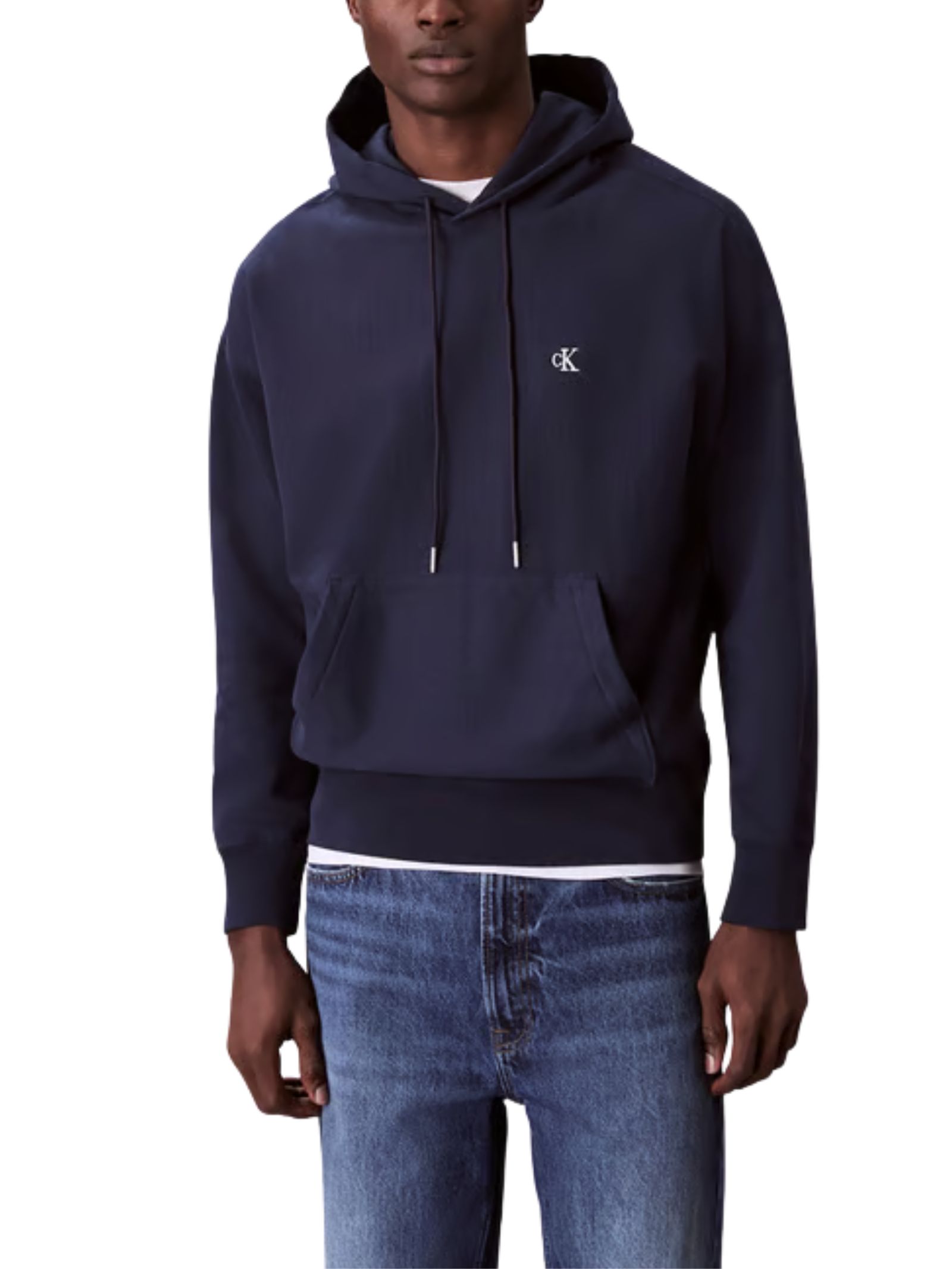 Felpa con cappuccio Calvin Klein Jeans realizzata in maglia fine elasticizzata, caratterizzata da una vestibilità rilassata e spalle cadenti per un comfort ottimale. Dotata di cappuccio con coulisse regolabile, presenta polsini e orlo rifiniti con un comodo cordino elastico e una pratica tasca a marsupio sul davanti. 86% Cotone 14% Polyester