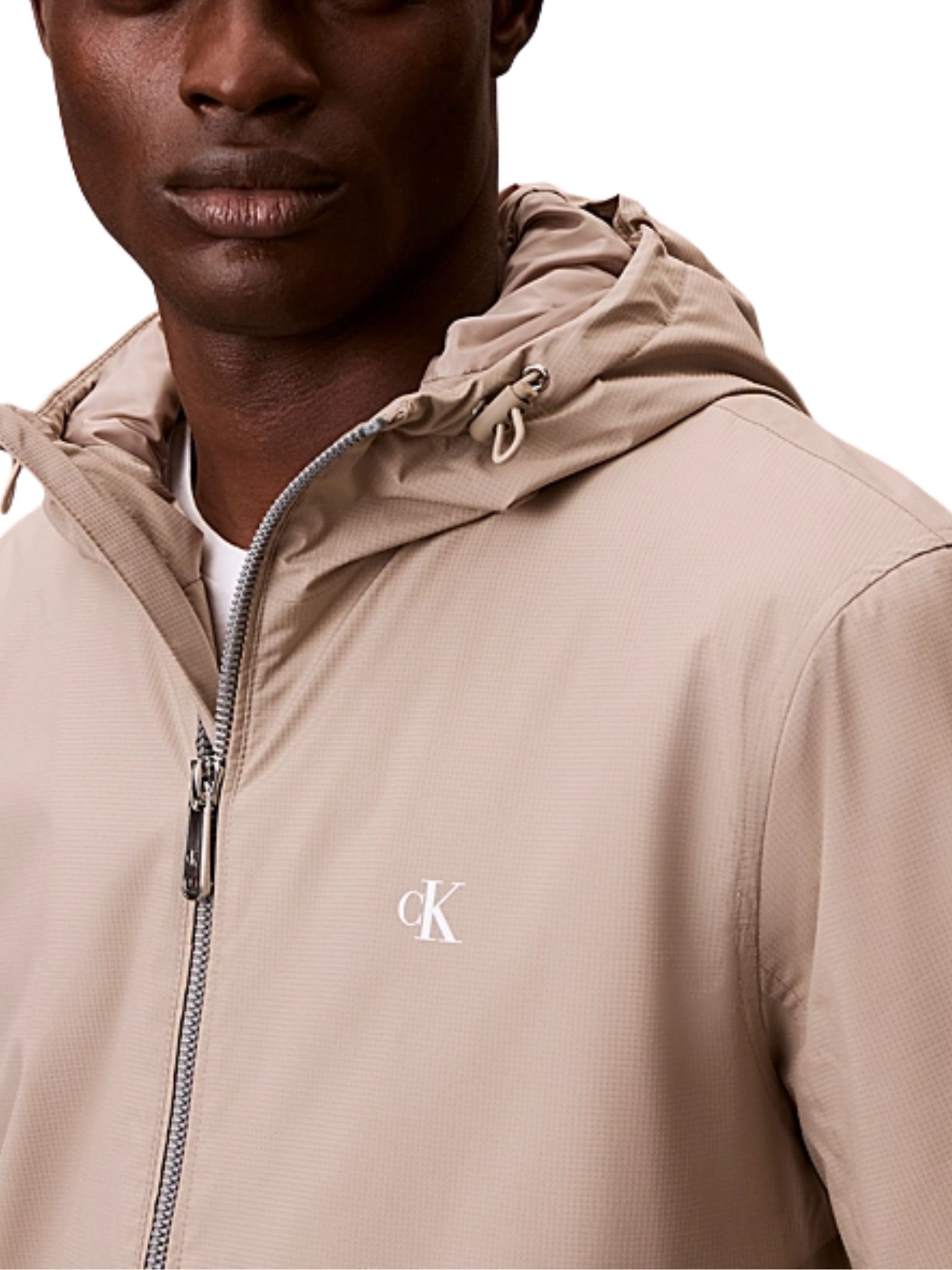 Giacca ripstop con cappuccio Calvin Klein dal design essenziale e funzionale, con maniche lunghe, cappuccio con coulisse, chiusura con zip anteriore, tasche laterali a filetto, tasca interna applicata e tasca interna a filetto, interamente foderata e rifinita dal dettaglio monogramma, con taglio regolare. Composizione: 100% poliestere.
