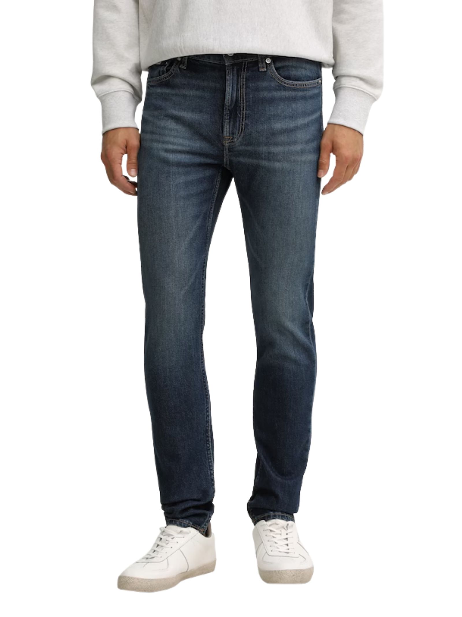 Calvin Klein Jeans slim taper fit con vita regular, realizzati in denim leggermente elastico per un comfort ottimale, in 98% cotone e 2% elastan.
