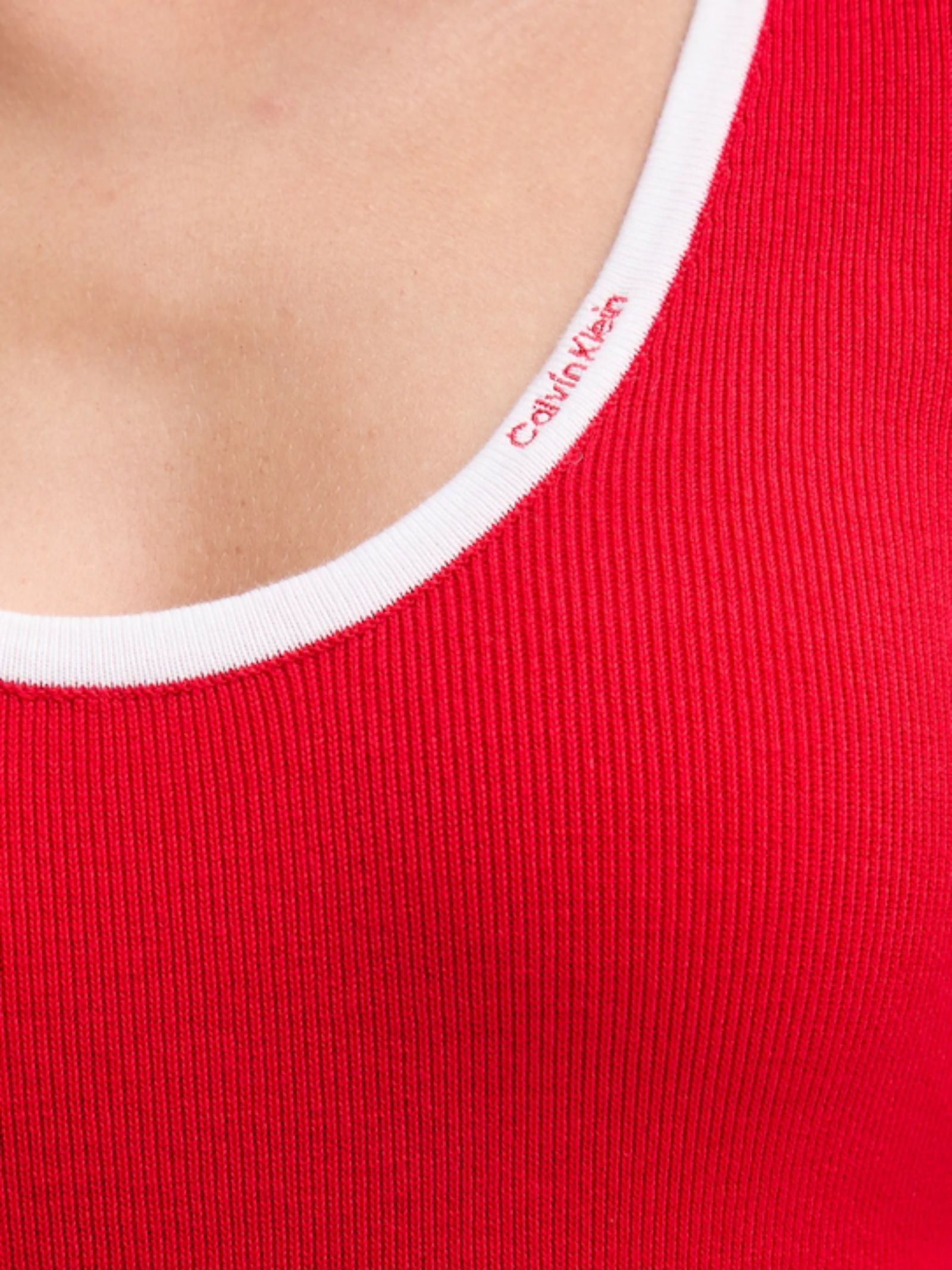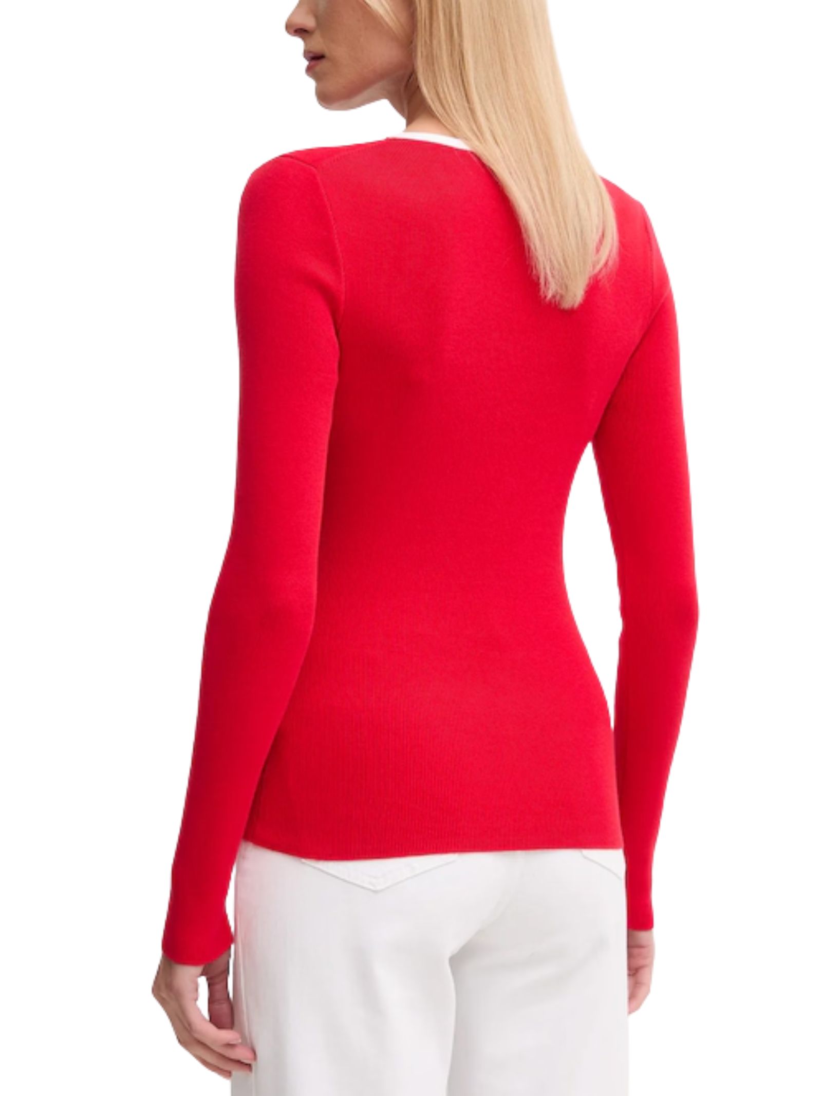 Maglia a maniche lunghe rossa con scollo bianco a barchetta e finitura a contrasto, dal taglio regolare per un look essenziale e versatile; composta da 88% cotone, 10% poliammide e 2% elastan.