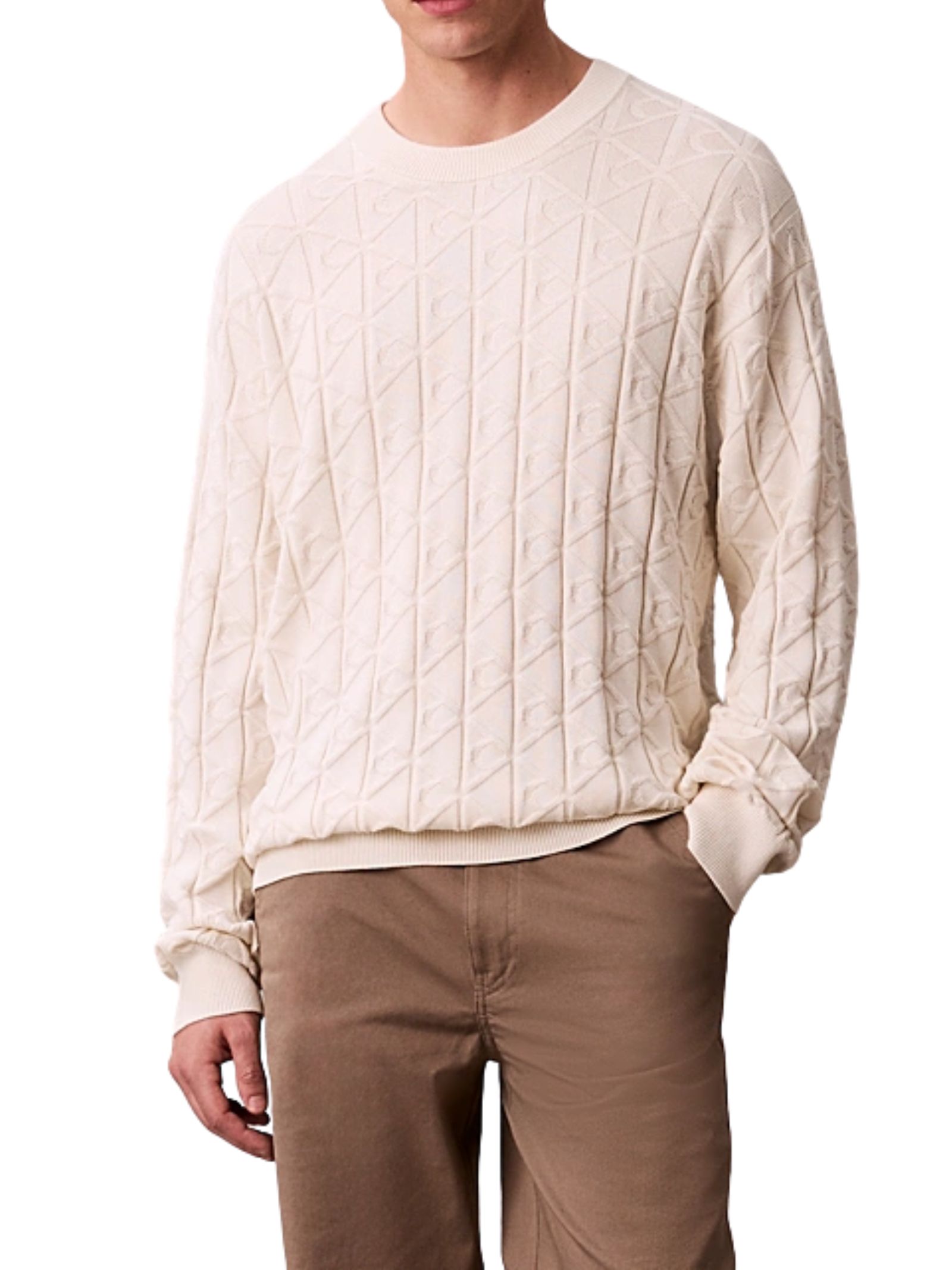 Maglia in 100% cotone con emblem logo all-over, girocollo e maniche lunghe, polsini e orlo a costine; vestibilità relaxed, confortevole e ideale per luso quotidiano.