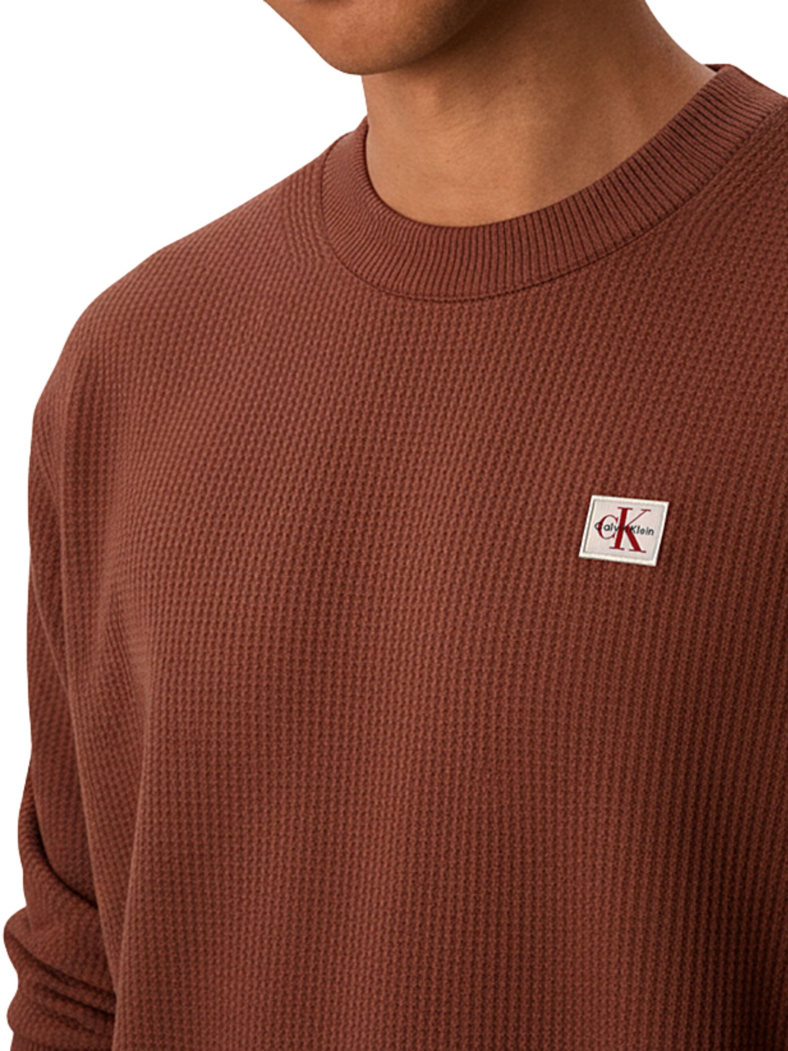 Maglione lavorato a maglia con motivo a losanghe in cotone testurizzato goffrato, con girocollo e maniche lunghe e dettaglio monologo, caratterizzato da un taglio relaxed e realizzato in 100% cotone.