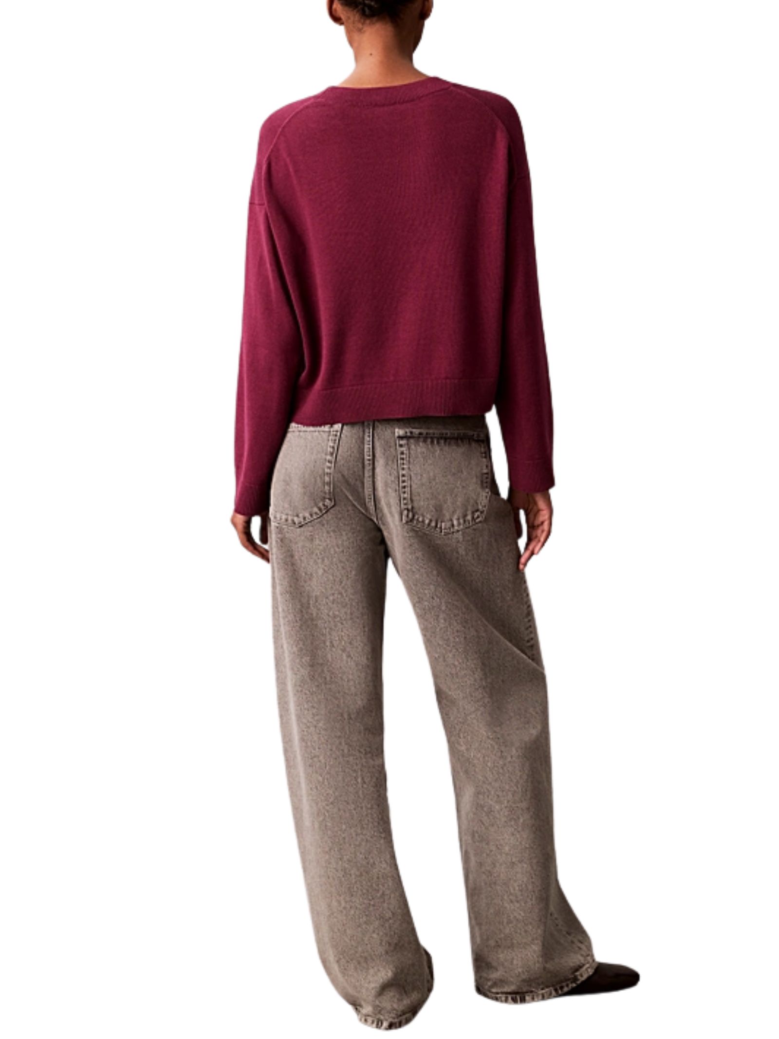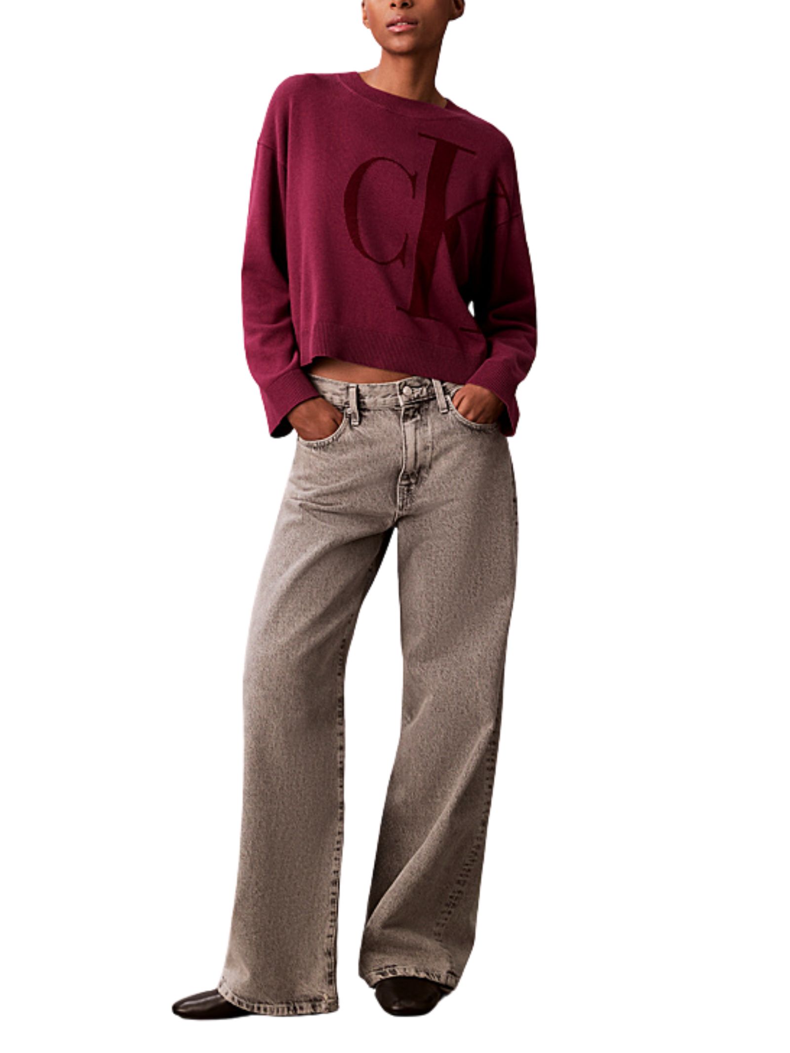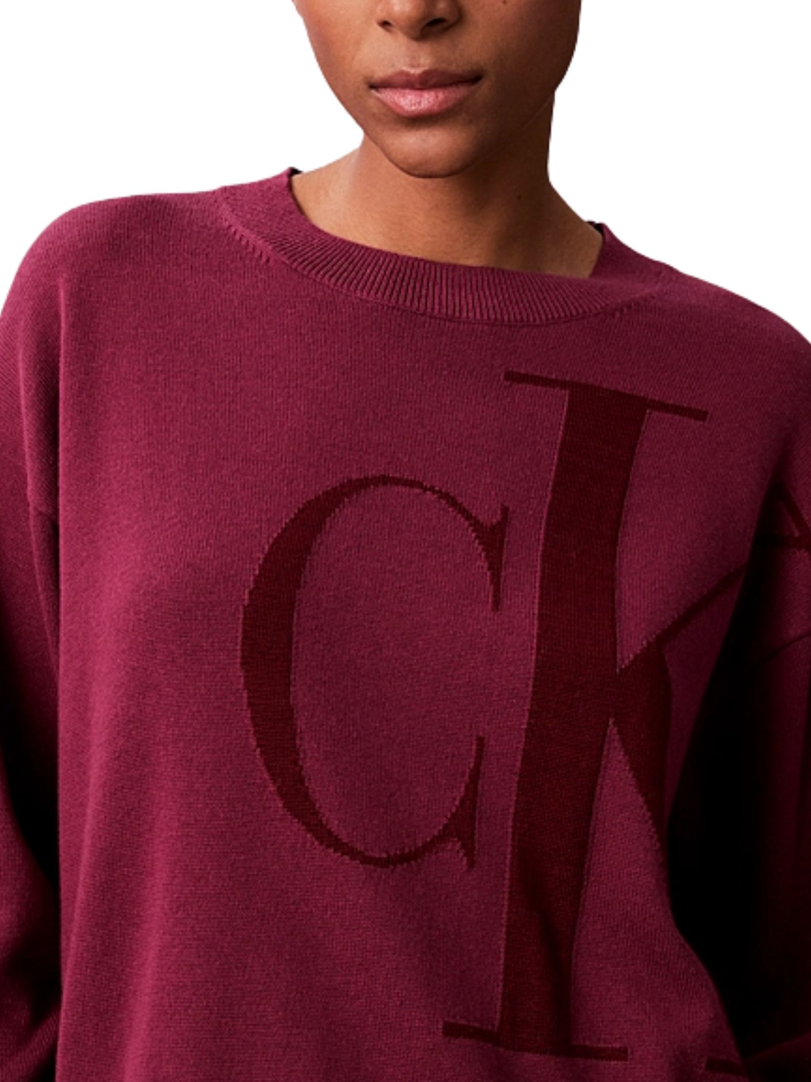 Maglione Calvin Klein donna, classico e raffinato per un guardaroba elegante, con girocollo e maniche lunghe, finitura a costine e design monogramma, dal taglio relaxed. Composizione: 100% cotone.