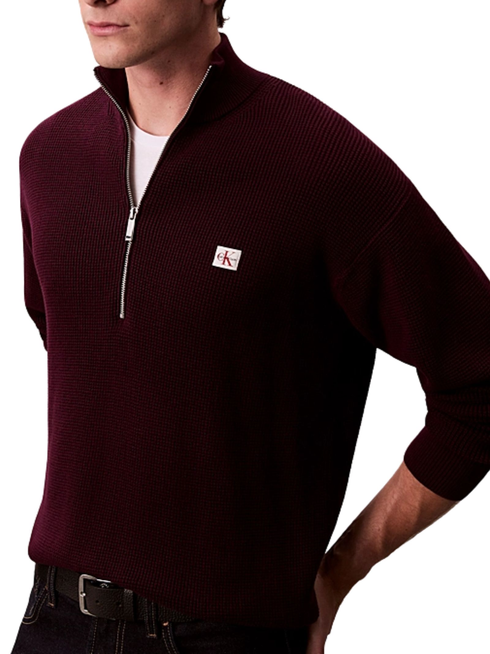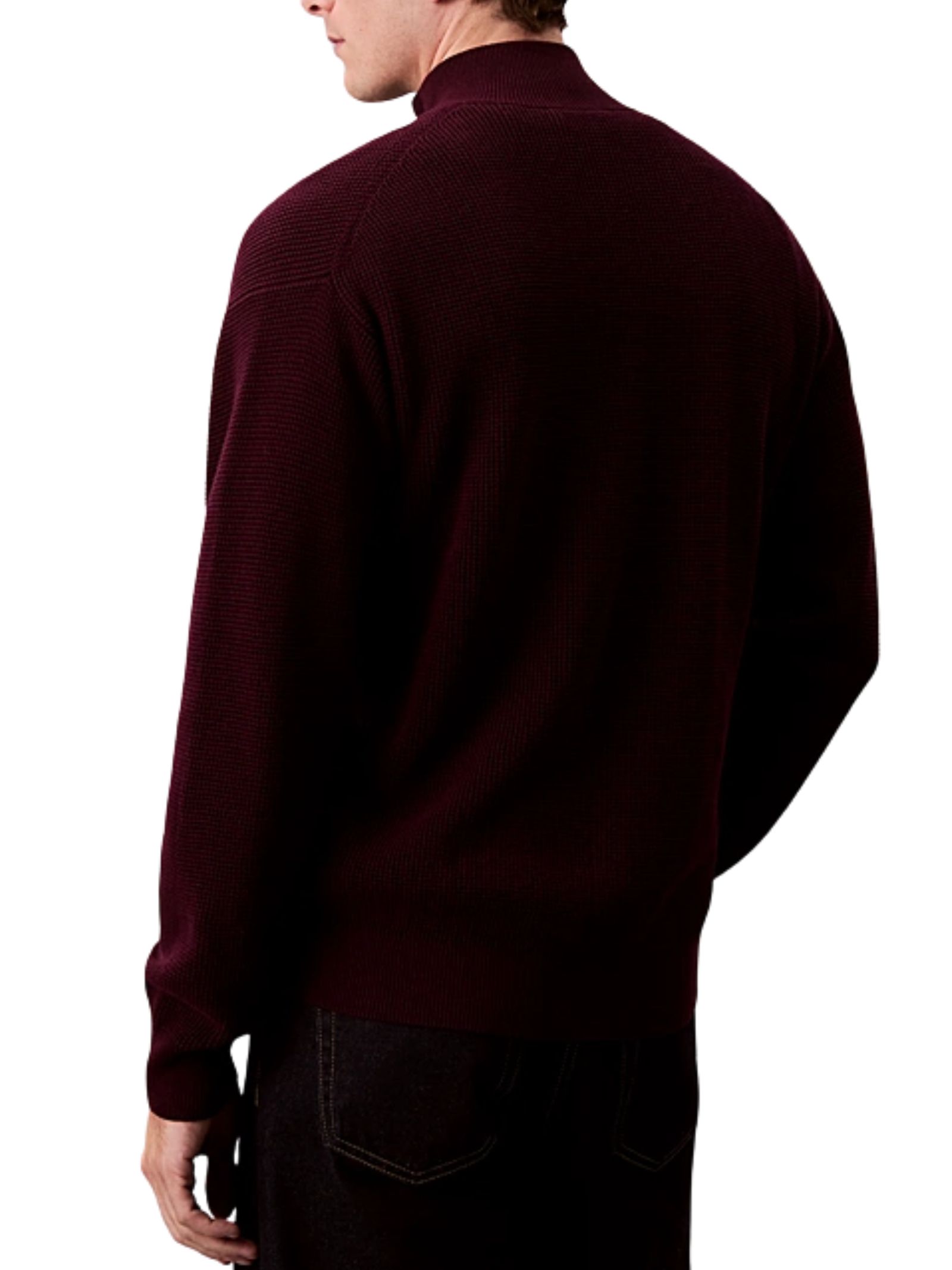 Maglione in cotone caratterizzata da texture a nido dape, maniche lunghe e collo alto con chiusura zip a un quarto, rifinita con polsini e orlo elasticizzati e dettaglio monologo, dalla vestibilità comoda ideale per un look casual curato. Composizione: 100% cotone.