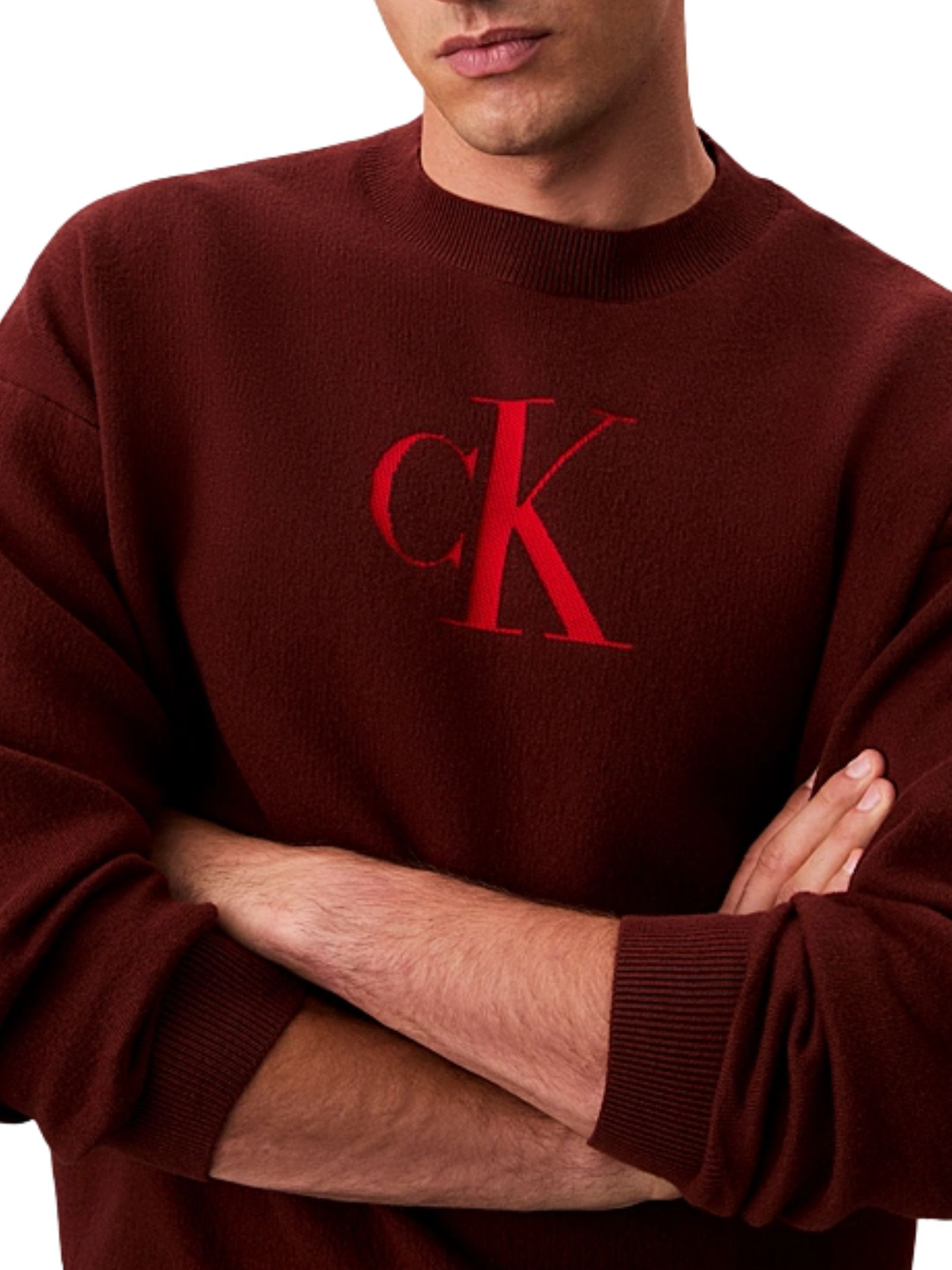 Maglione girocollo a maniche lunghe con logo monogramma a contrasto sulla parte alta del petto, dal taglio relaxed per una vestibilità comoda, realizzato in una pregiata composizione 95% cotone e 5% cashmere.