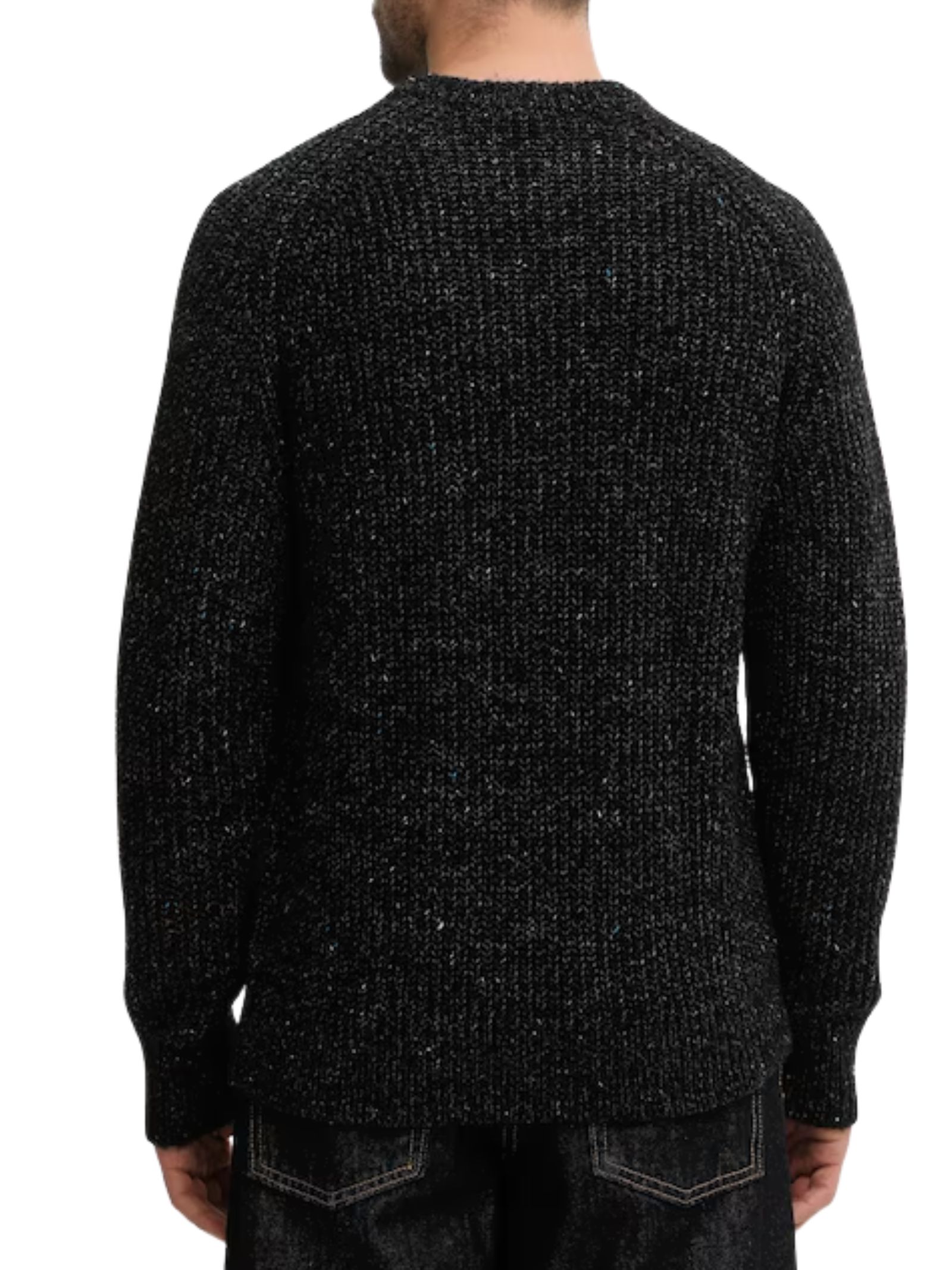 Maglione nero raglan in misto lana dal taglio relaxed, con girocollo e maniche lunghe, finitura a costine e dettaglio logo monogramma sull'orlo; realizzato in una composizione 58% lana, 36% poliestere e 6% nylon.