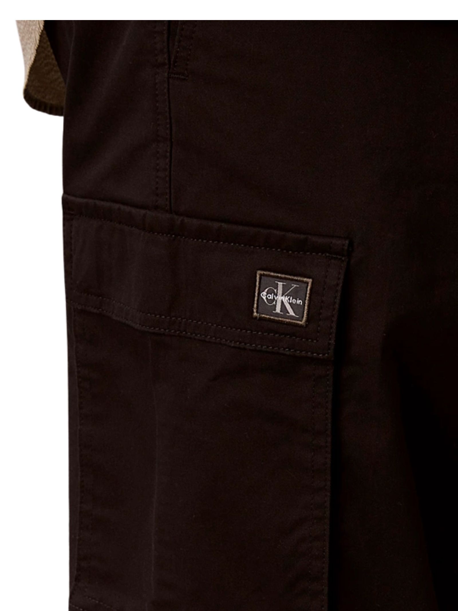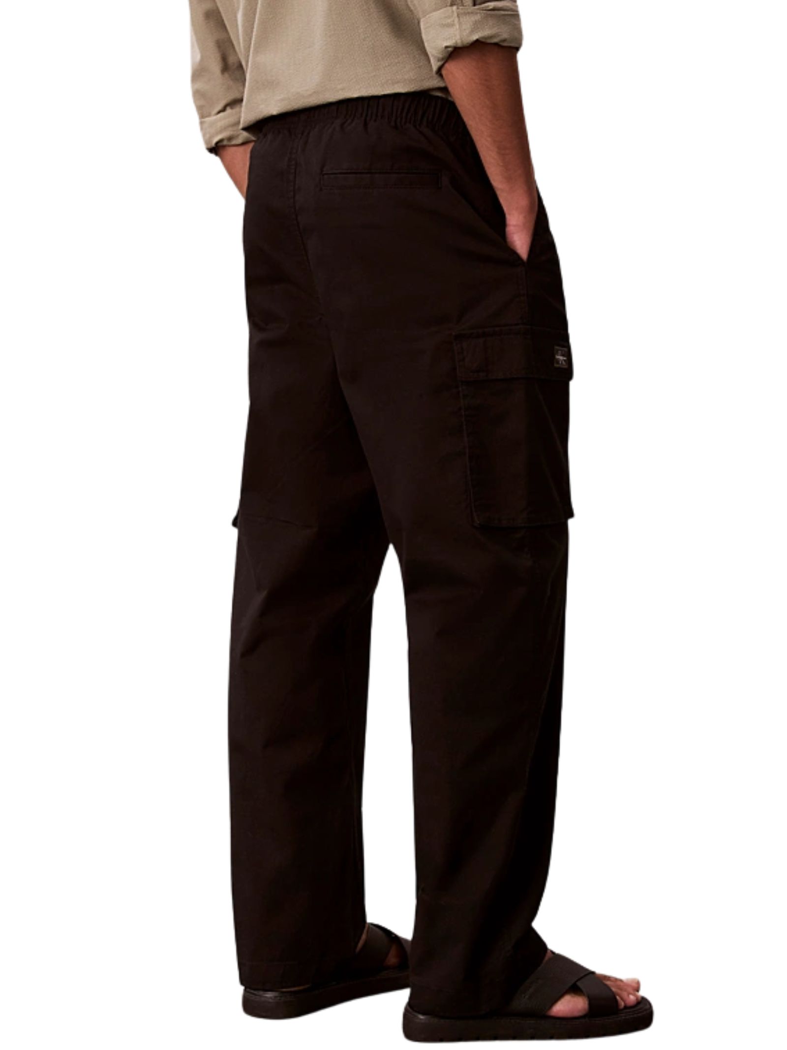 Pantalone cargo in cotone elasticizzato comodo con vita elastica, chiusura con zip e bottone, tasche a filetto sul retro, tasca profilata e tasche cargo con patta, completato da etichetta con logo Calvin Klein sulla tasca posteriore, vita media, taglio relaxed e gamba dritta. Composizione: 97% cotone, 3% elastan.
