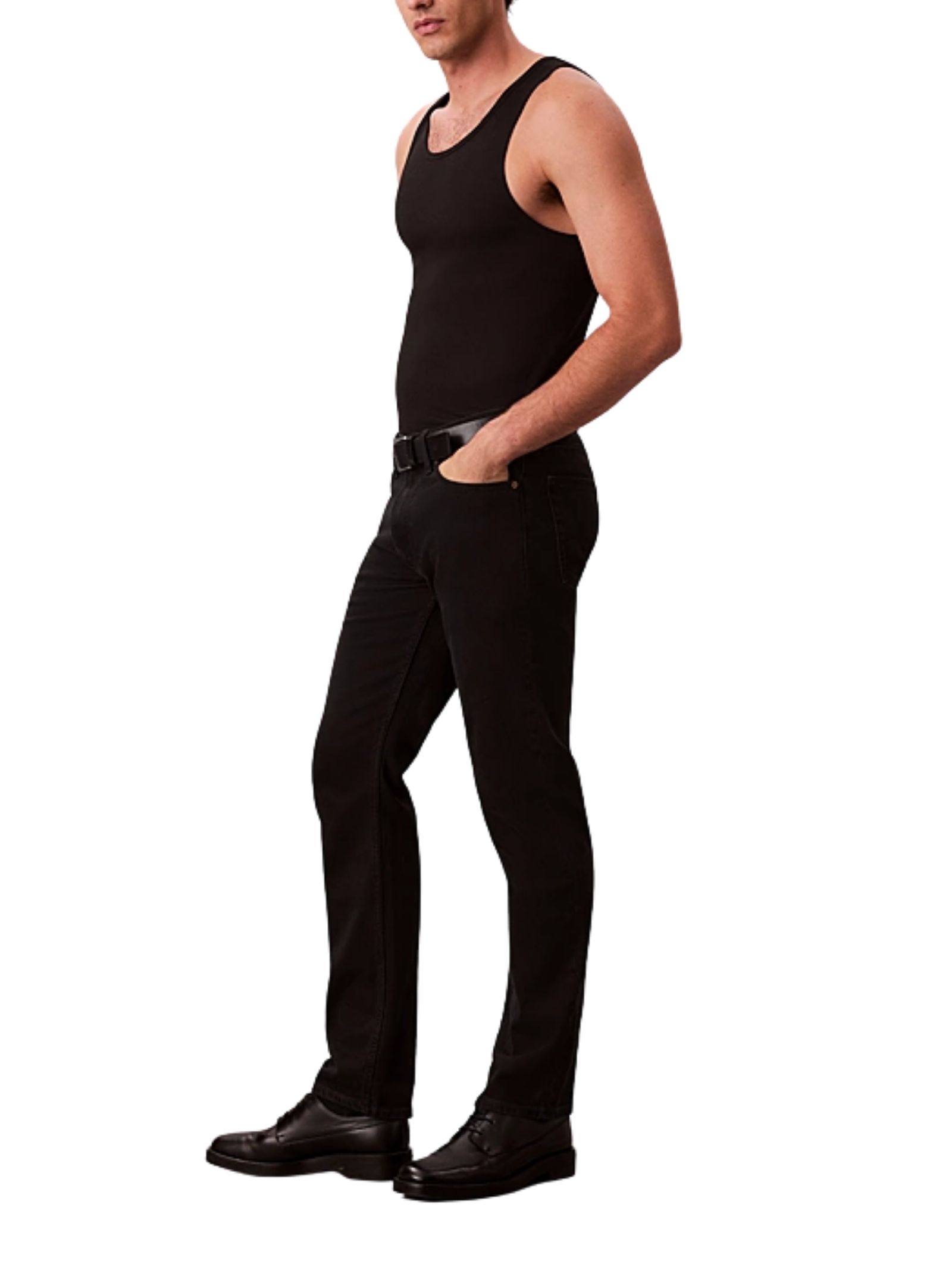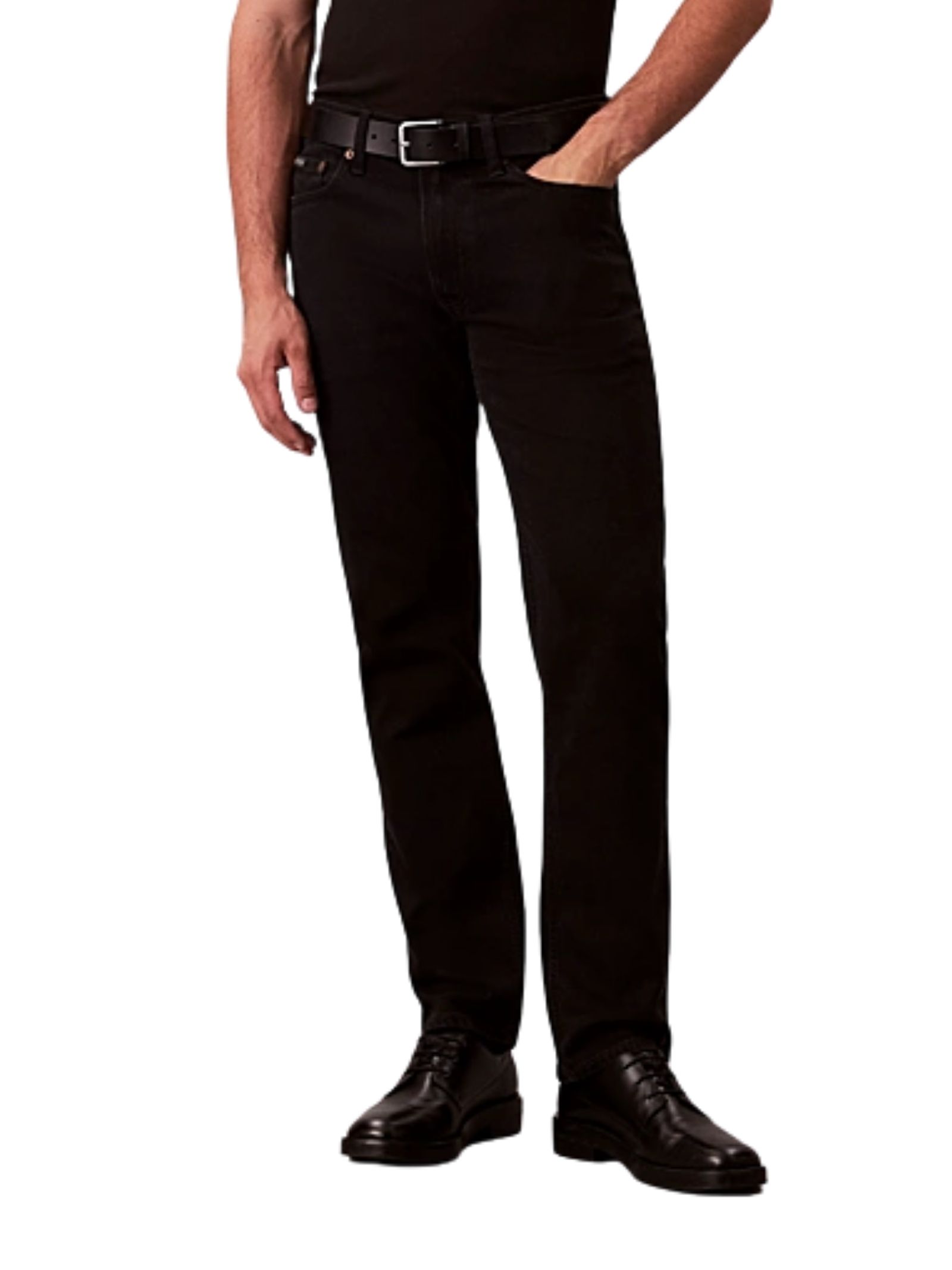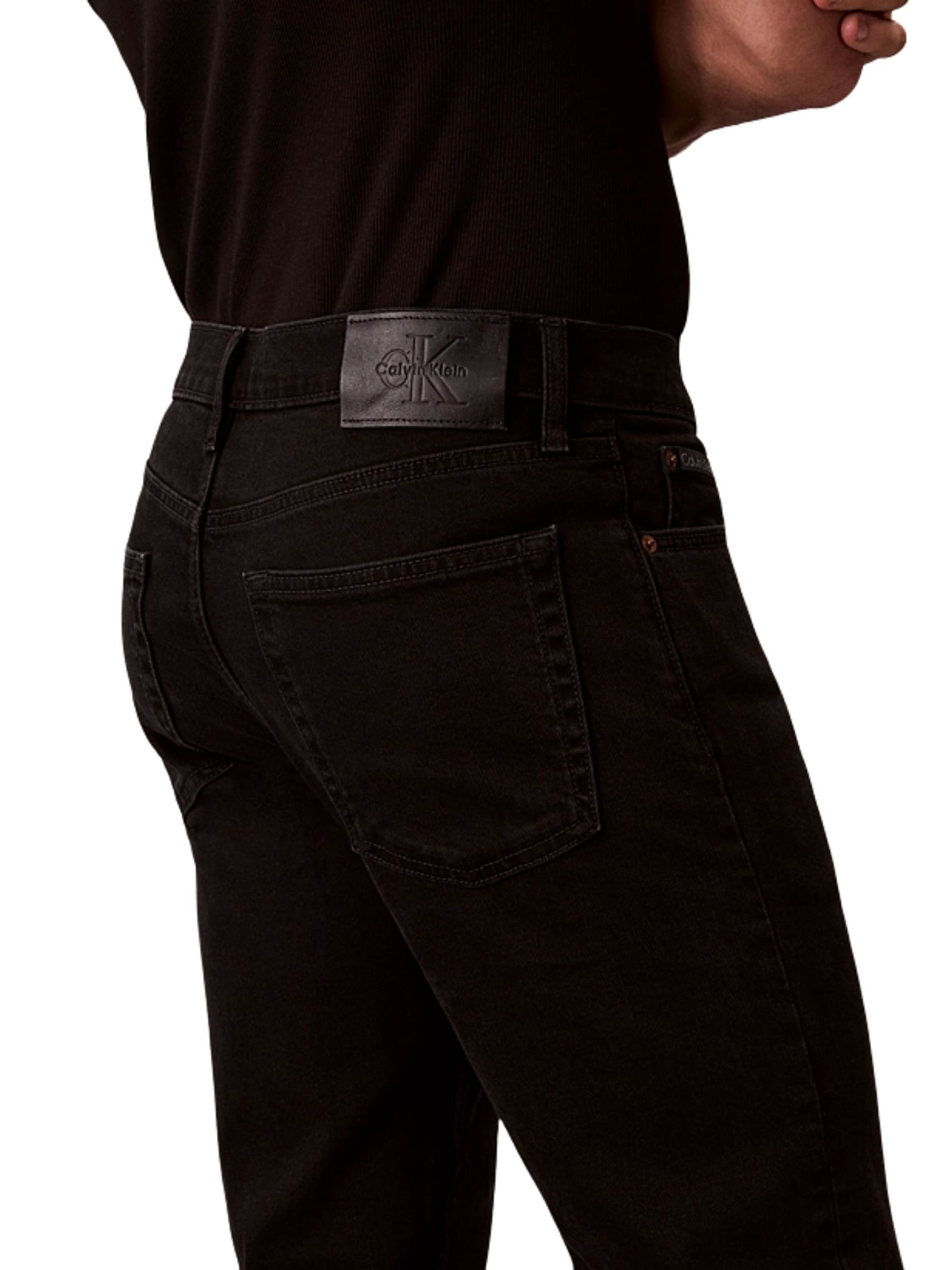 Jeans elasticizzato in cotone extra morbido per una sensazione di massima libertà, con etichetta Calvin Klein dal design anni 80 sul taschino portamonete, patta con cerniera con logo CK e stelo in metallo ispirato alla tradizione, monogramma logo applicato sul retro in vita; presenta una vestibilità slim straight ed è realizzato in 98% cotone e 2% elastan.