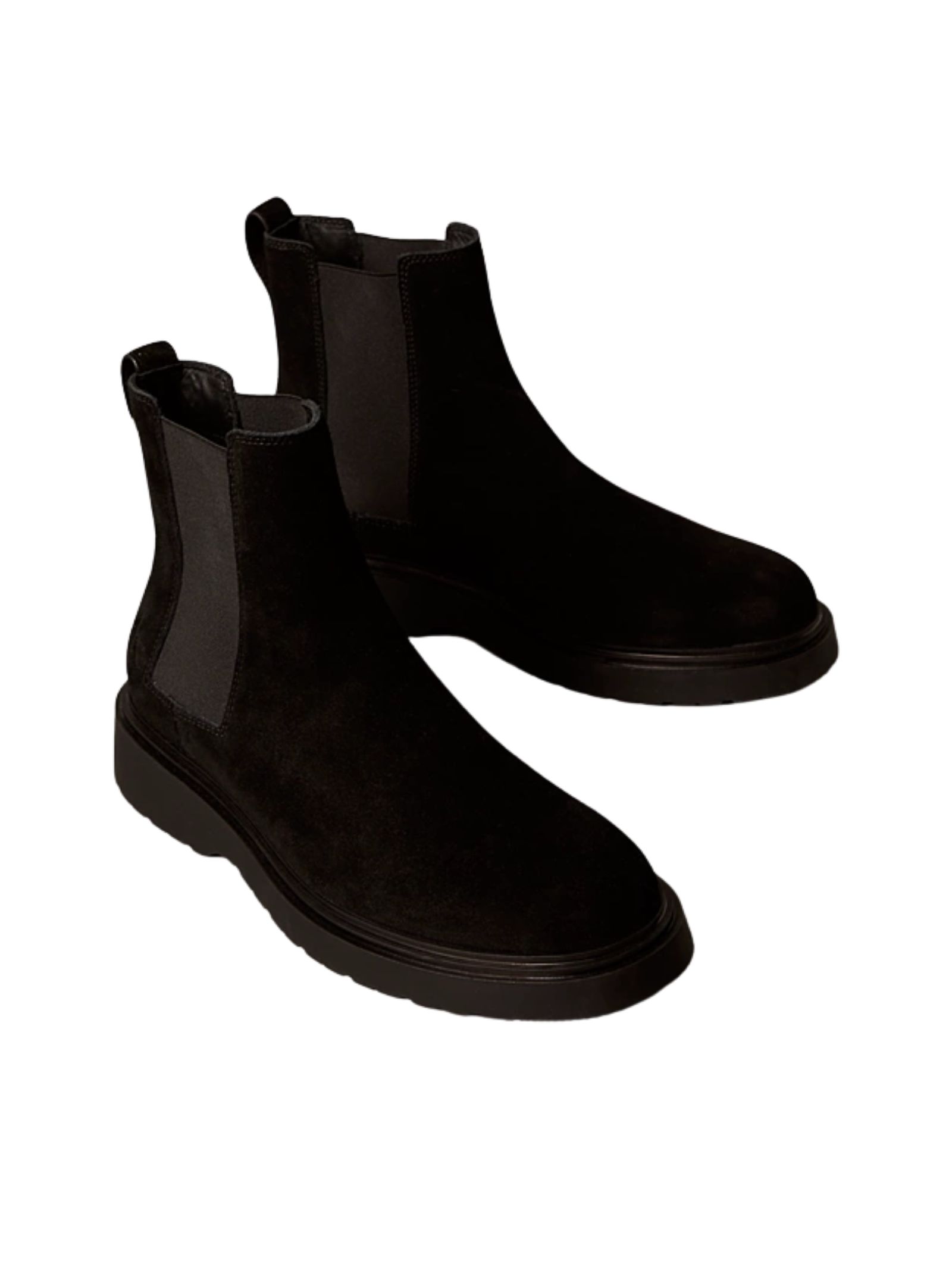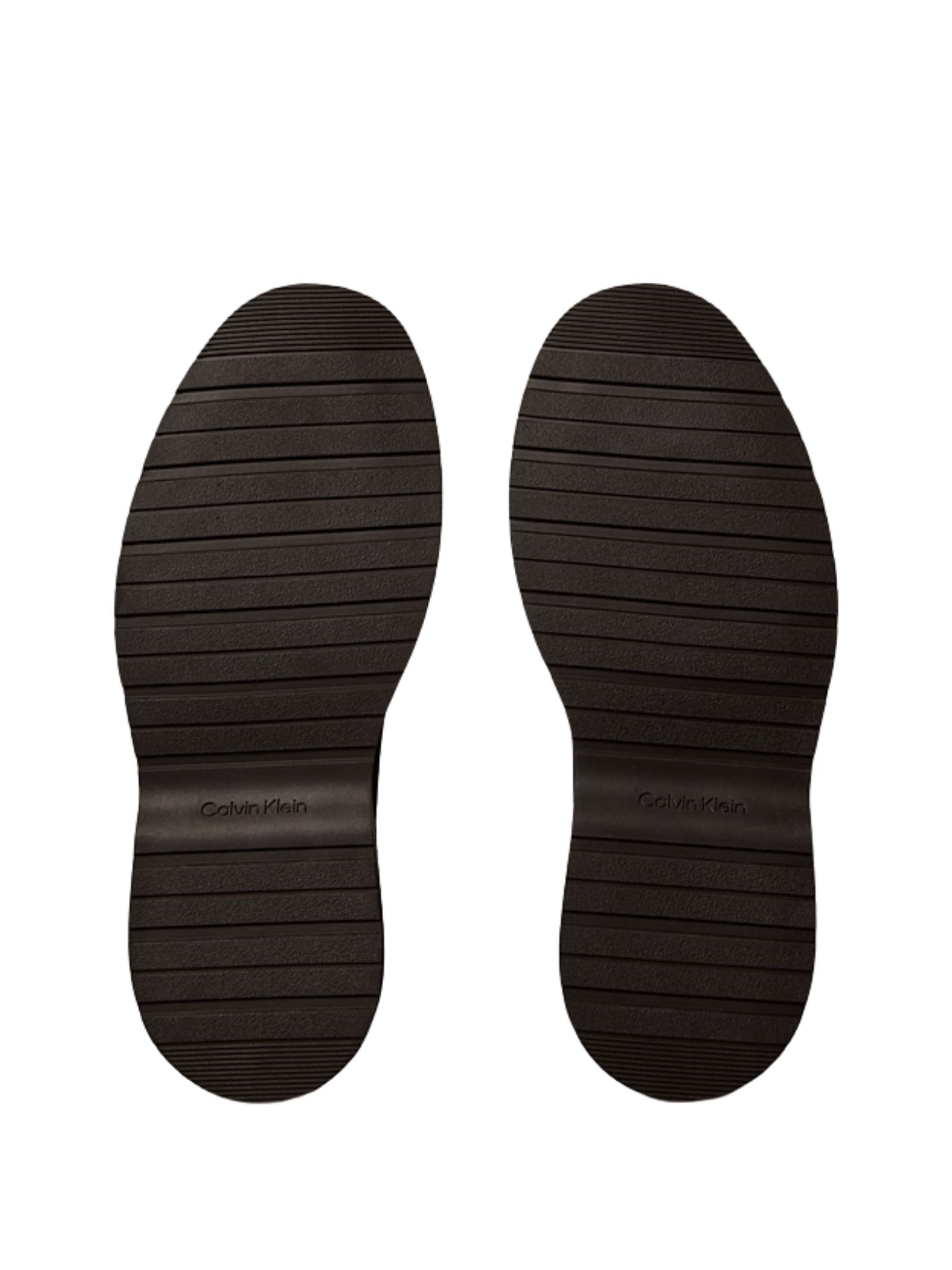 Ispirato ai classici anfibi militari, questo modello in morbida pelle scamosciata unisce struttura e praticità grazie alla suola esterna in TPR leggera e flessibile e alla soletta imbottita che assicura comfort prolungato. Presenta fodera in twill di cotone, linguetta, logo in rilievo sul tallone e monogramma Calvin Klein stampato ai lati. Altezza tacco 4,3 cm, altezza gambale 15,5 cm.