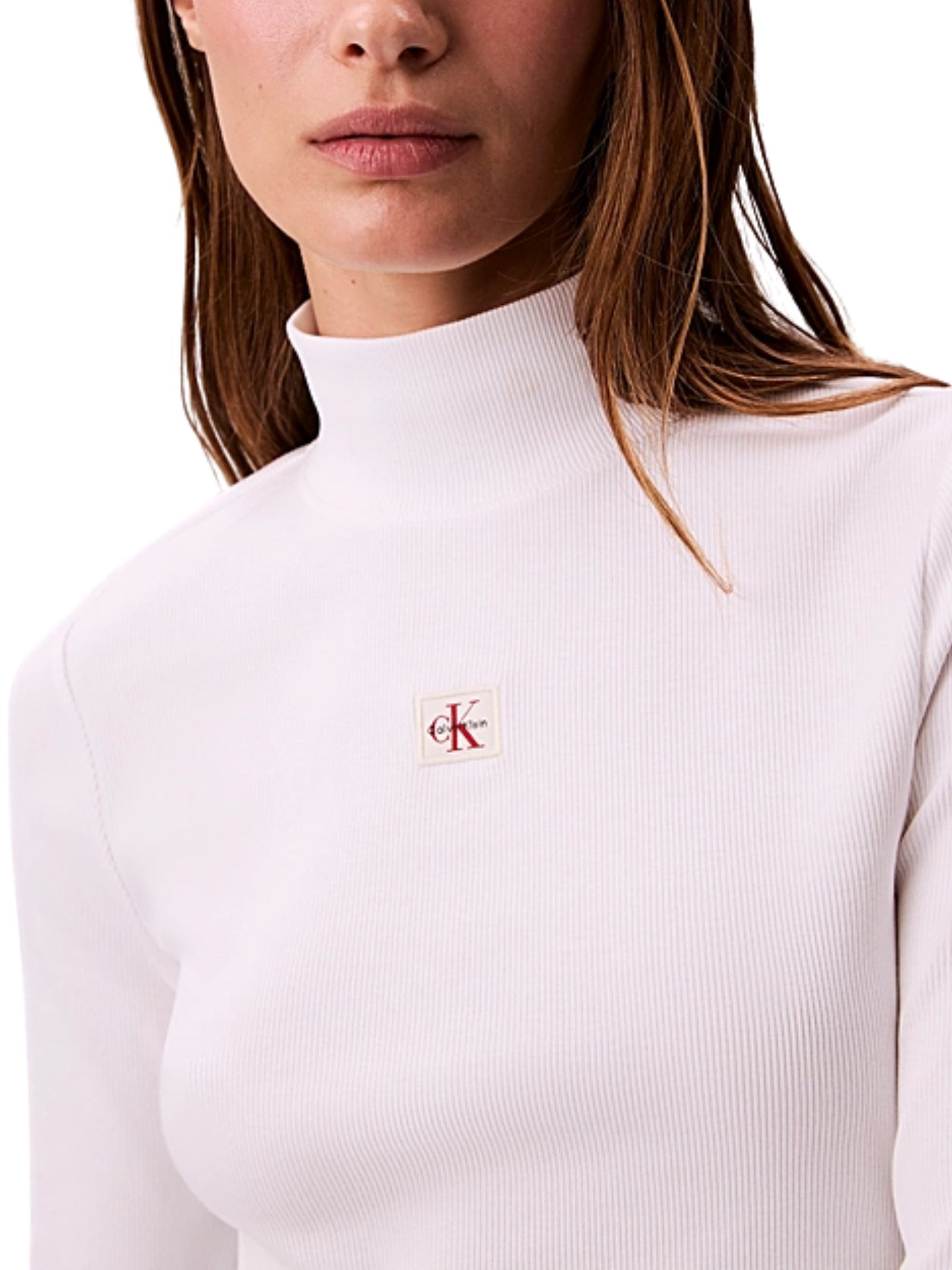 T shirt Calvin Klein Jeans a collo alto in cotone elasticizzato. Logo ricamato sul petto. Composizione 94% cotone 6% elastan