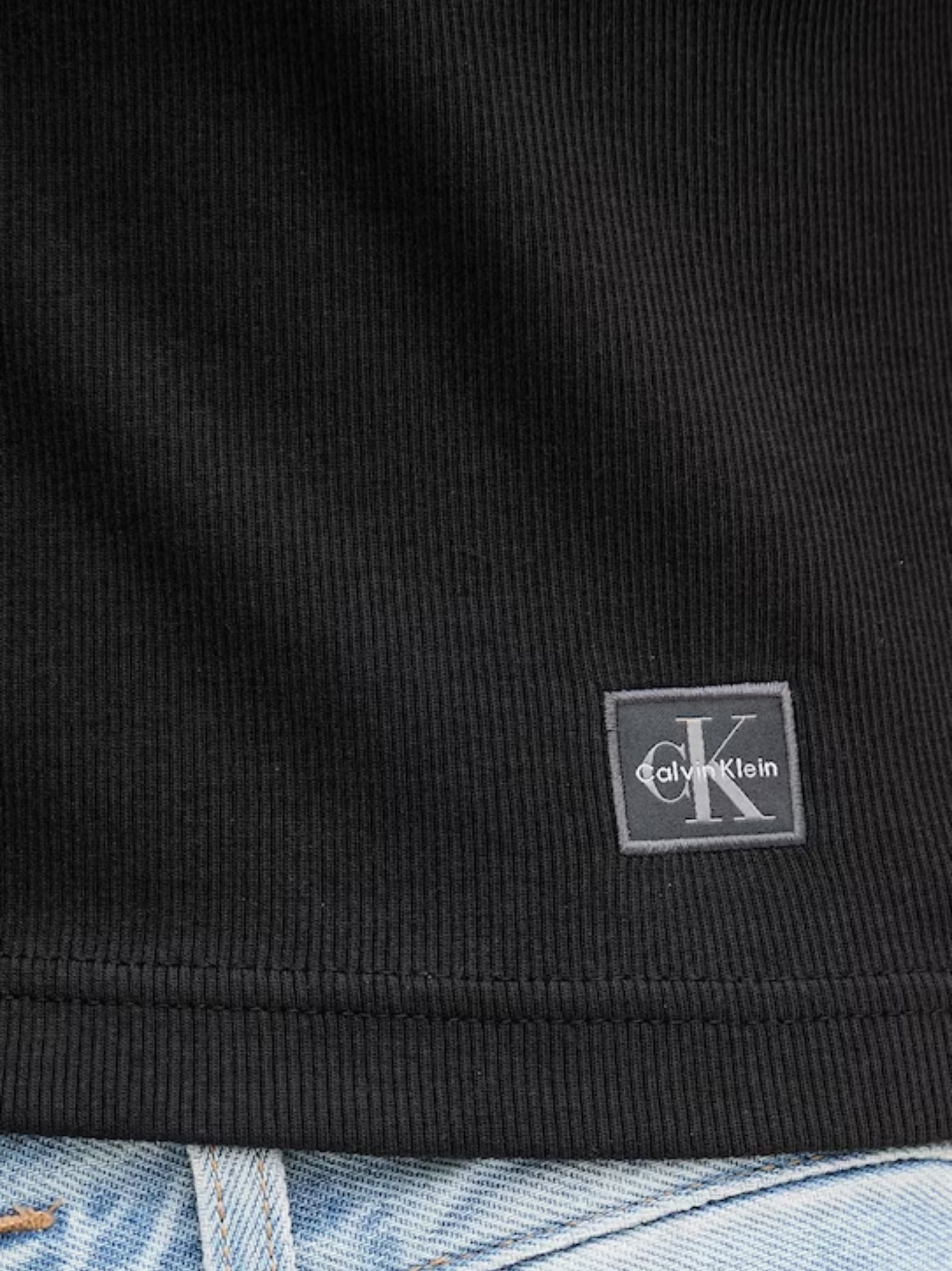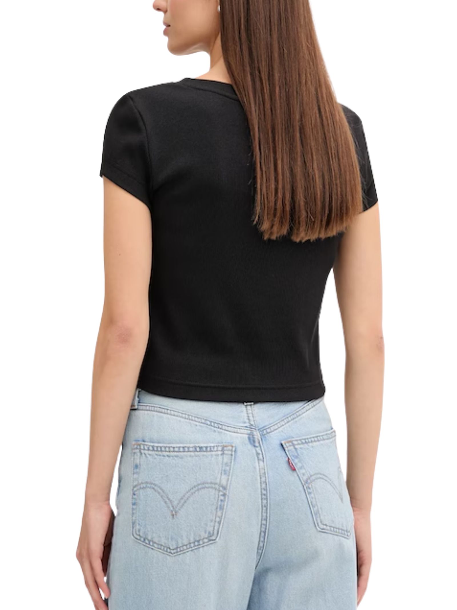 T-shirt Calvin Klein Jeans da donna in maglia fine elasticizzata, realizzata in jersey a costine con vestibilità slim fit e scollo a punta rifinito a coste.