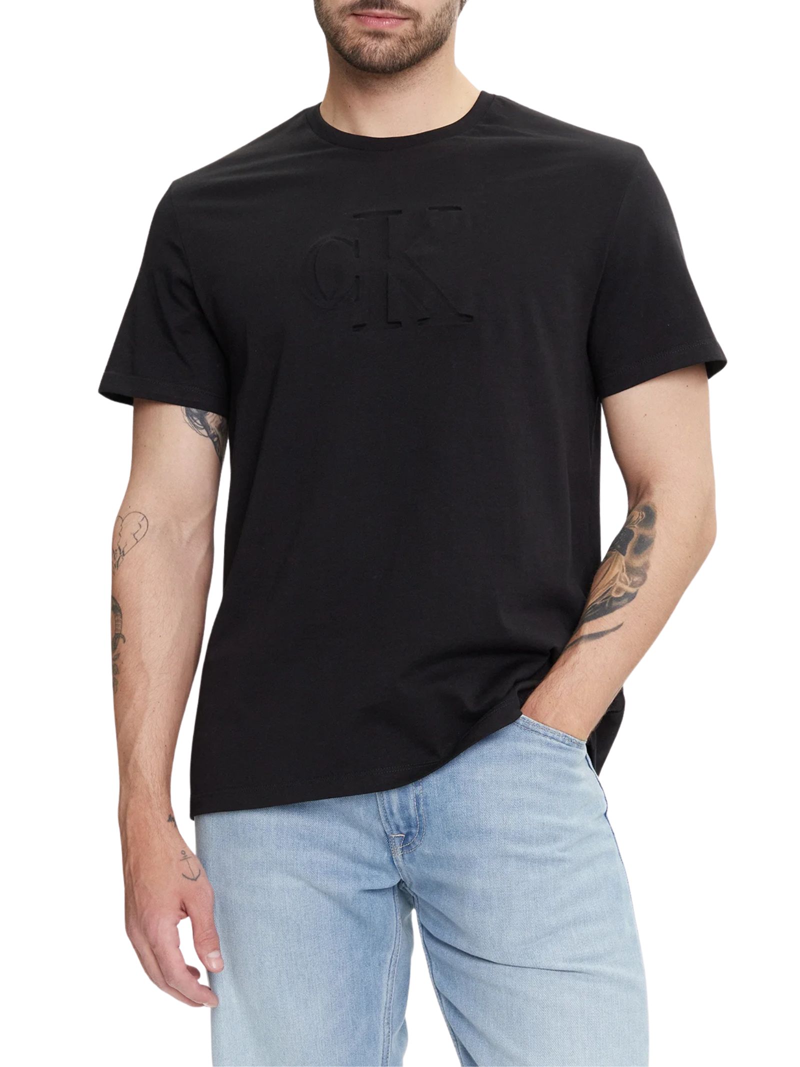 T-shirt Calvin Klein Jeans da uomo in jersey di cotone, caratterizzata da una vestibilità regular e da un design minimalista. Il logo CK tono su tono è scavato in rilievo sul petto, donando un effetto elegante e moderno.