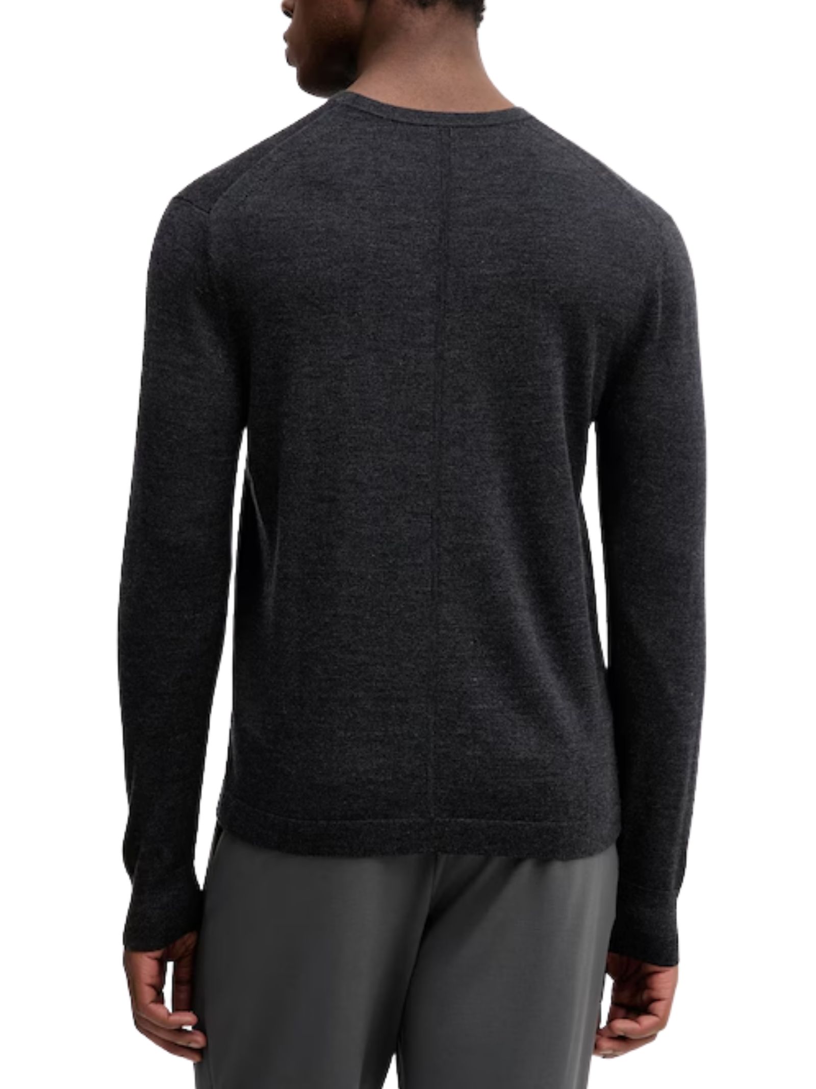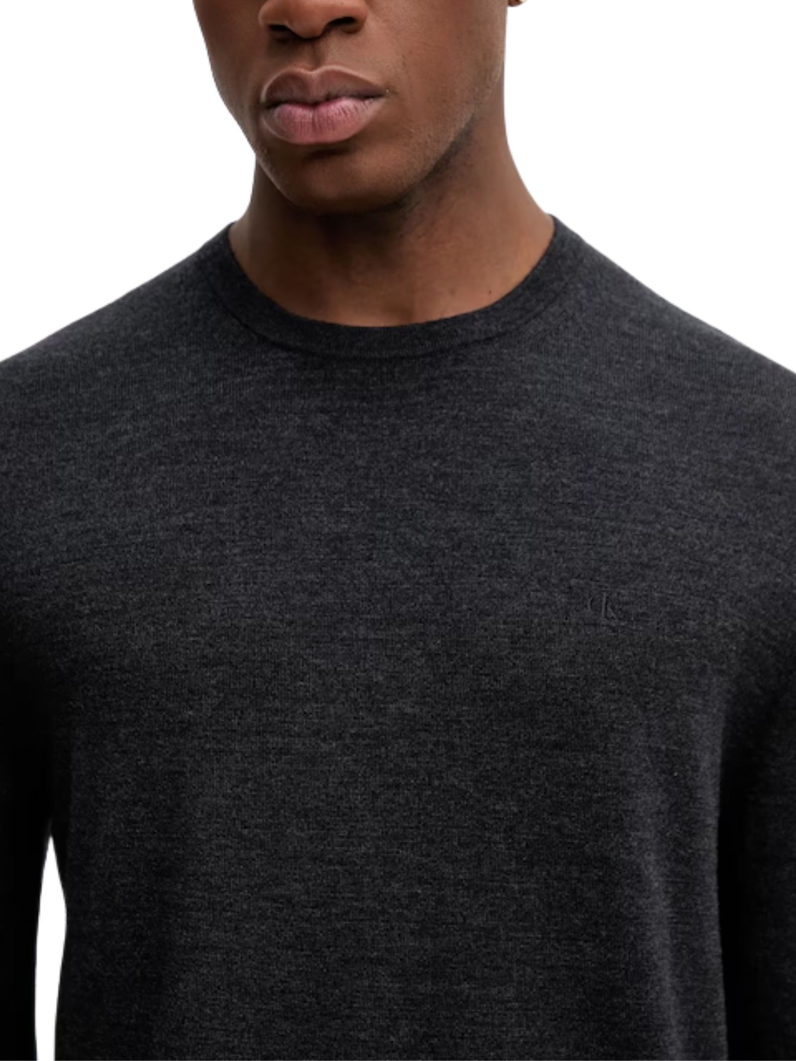 Maglioncino grigio Calvin Klein in lana elasticizzata a maglia fine, con scollatura rotonda, maniche lunghe e polsini e orlo a coste, dal taglio regolare comodo e versatile, con logo ricamato sul davanti, adatto sia a look eleganti che casual. 100% lana merino
