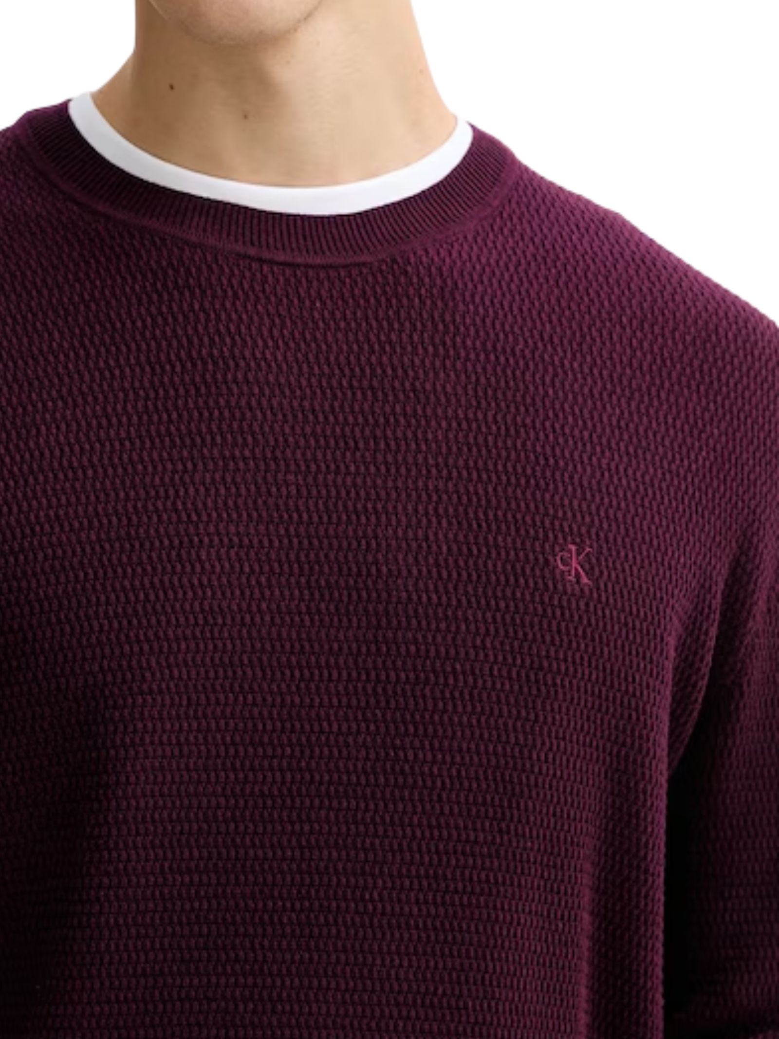 Maglione Calvin Klein in maglia fine elasticizzata, realizzato in materiale confortevole e traspirante ideale per la stagione calda; vestibilità ampia con spalle abbassate per maggiore libertà di movimento, maniche lunghe, girocollo classico e polsini e orlo rifiniti con cordino elastico. Composizione: 88% Cotone, 10% Nylon, 2% Elastan