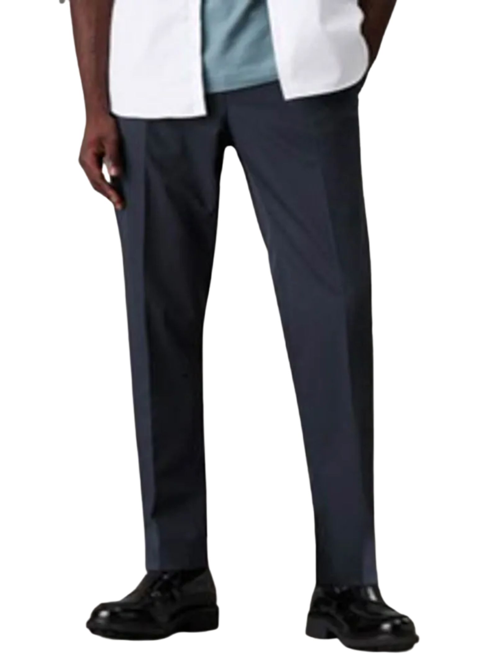 Pantaloni in twill slim affusolati dal design moderno e raffinato, realizzati in twill travel anti-piega in misto lana e poliestere, con vestibilità slim alla caviglia, vita media con elastico classico, patta con cerniera e chiusura con gancetti, gamba pressata, tasche laterali e tasche a filetto sul retro, modello foderato. Composizione: tessuto esterno 50% lana 50% poliestere; fodera 100% poliestere.