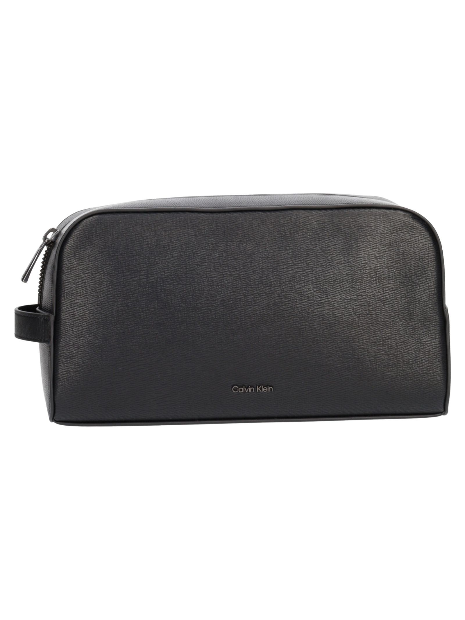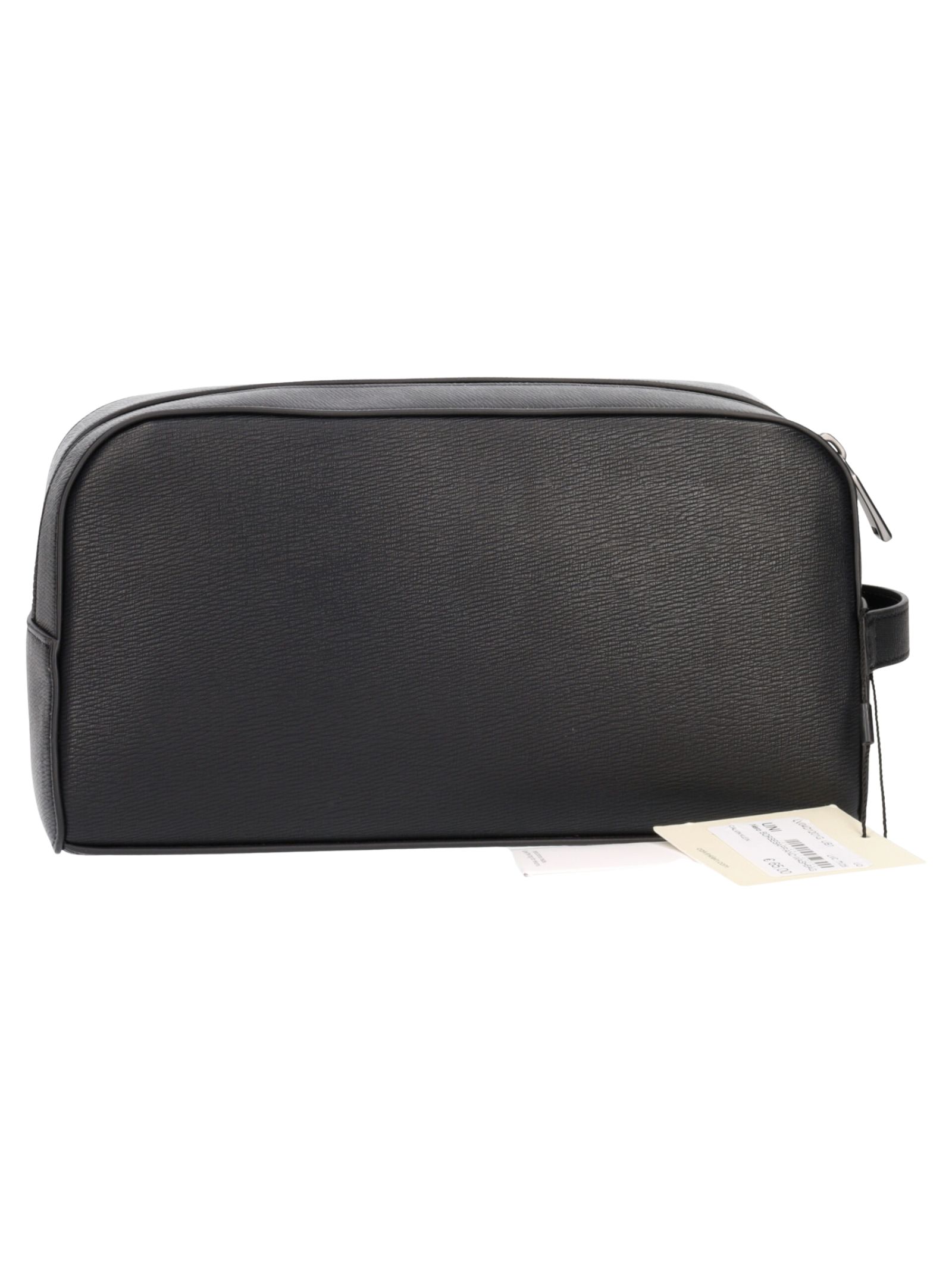 Pochette Clavin Klein da uomo in ecopelle stampa saffiano nera con zip centrale e taschino interno di servizio. Dimensioni: 24x13x10cm