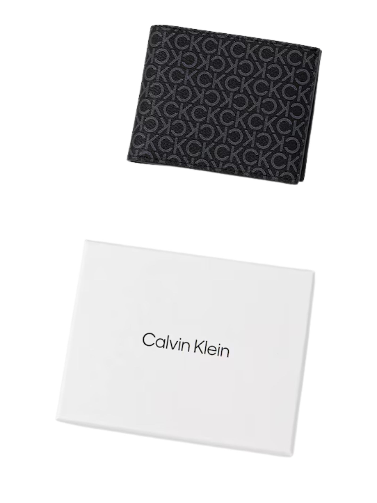 Portafoglio piccolo Calvin Klein in pelle sintetica, con protezione RFID per la sicurezza dei dati elettronici. Dispone di 2 scomparti per banconote, 7 scomparti per carte e tasca portamonete con chiusura a scatto. Realizzato con poliestere riciclato e presentato in scatola con marchio. Dimensioni: 11 x 9,5 cm.