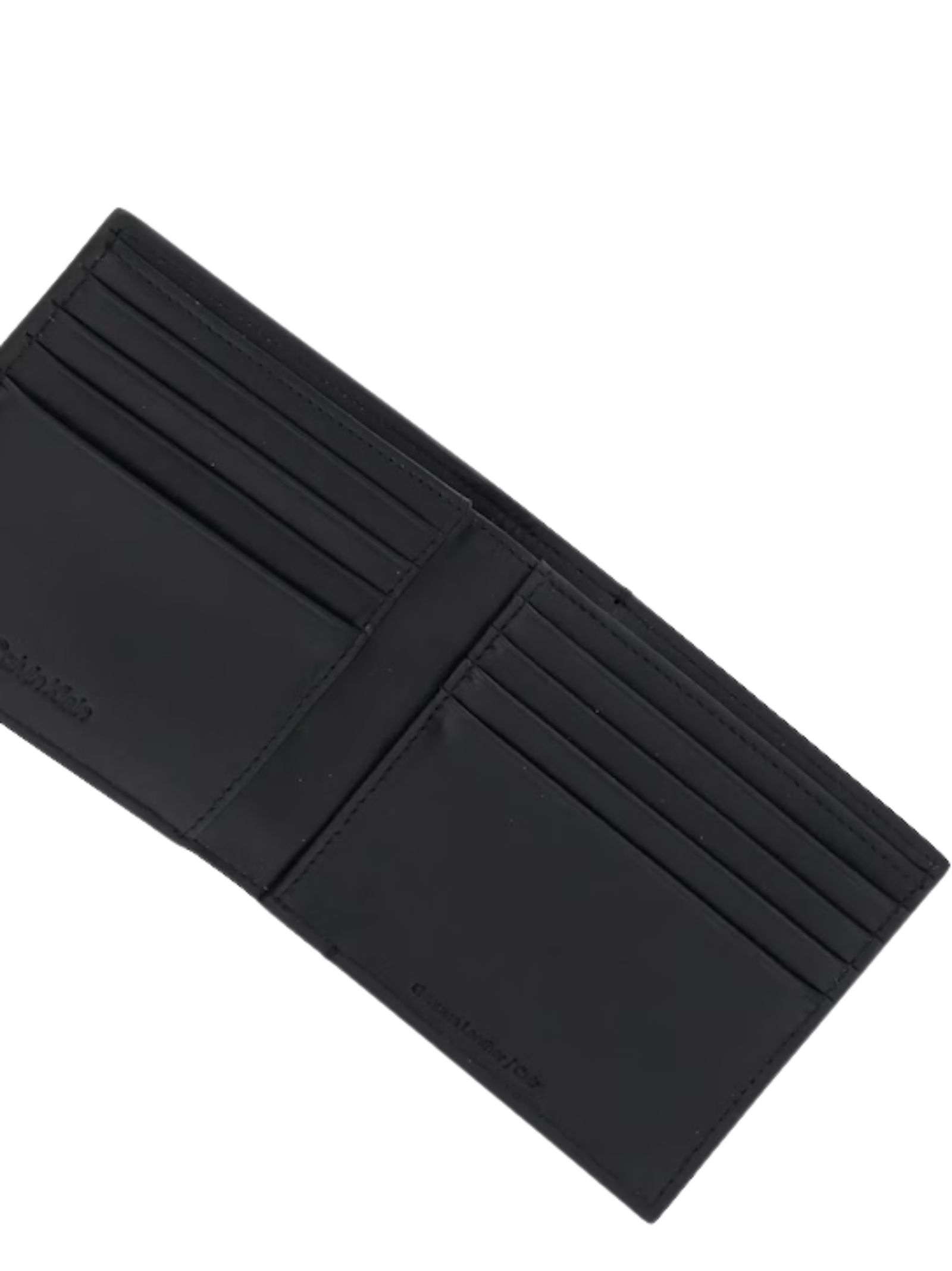 Portafoglio medio Calvin Klein in pelle naturale, con protezione RFID Protect per la sicurezza dei dati elettronici. Dotato di compartimento per banconote e 10 scomparti per carte. Presentato in scatola con marchio. Dimensioni: 9 x 11 cm.