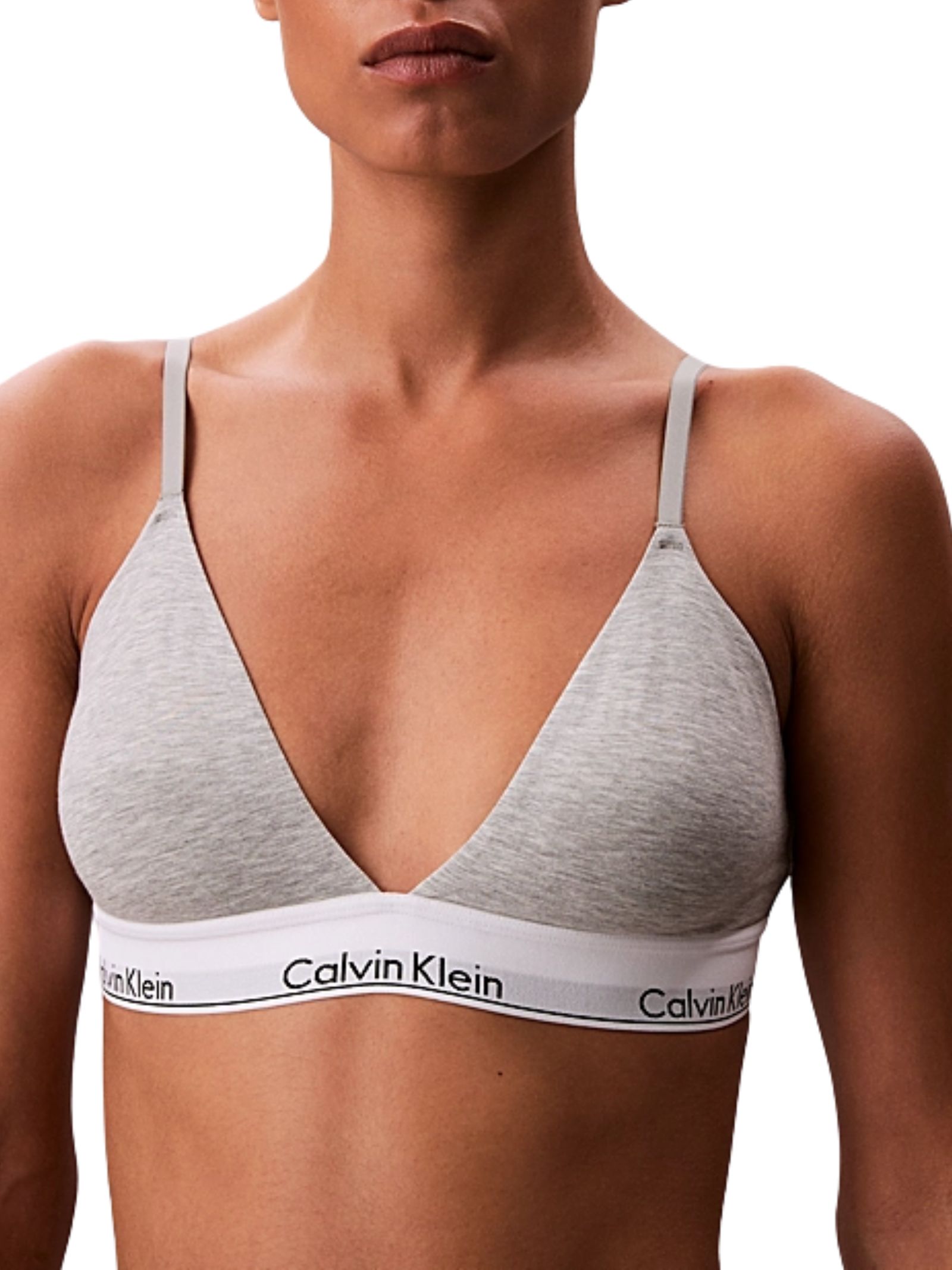 Reggiseno a triangolo Calvin Klein in morbido misto cotone e modal elasticizzato con fascia Infinity Bond senza cuciture per un comfort totale, coppe leggermente foderate con imbottitura removibile e senza ferretto; spalline regolabili da indossare in modo tradizionale o incrociato e chiusura posteriore con gancetto ammortizzata. Realizzato in 53% cotone, 35% modal e 12% elastan.
