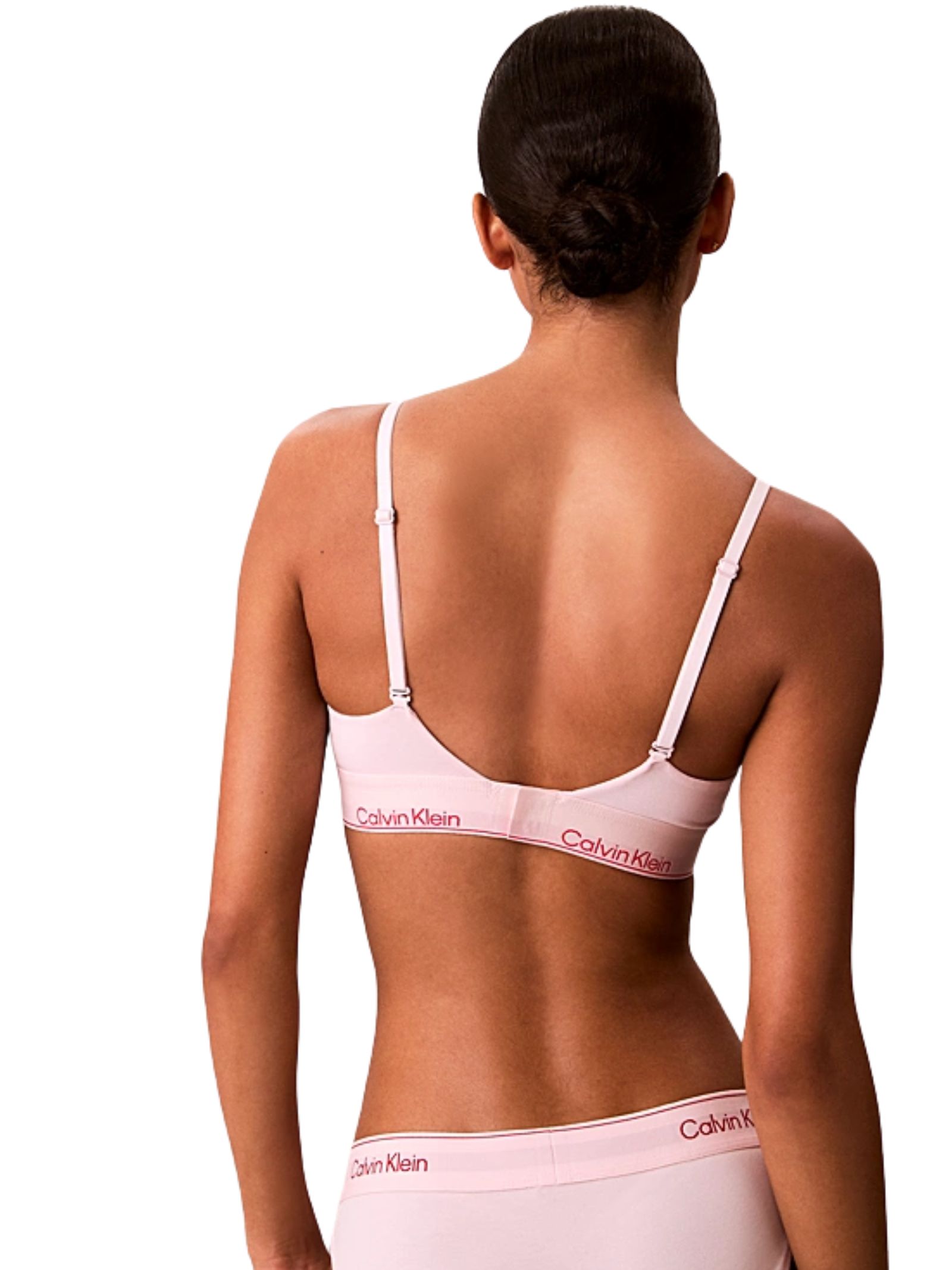 Reggiseno a triangolo Calvin Klein in morbido misto cotone e modal elasticizzato con fascia Infinity Bond senza cuciture per un comfort totale, coppe leggermente foderate con imbottitura removibile e senza ferretto; spalline regolabili da indossare in modo tradizionale o incrociato e chiusura posteriore con gancetto ammortizzata. Realizzato in 53% cotone, 35% modal e 12% elastan.